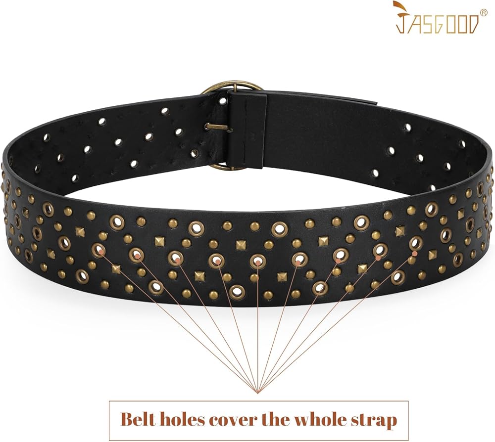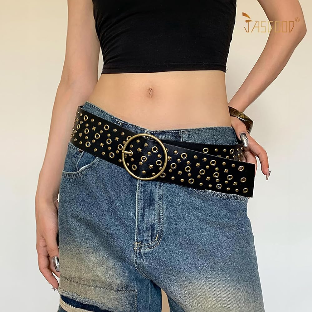 الحزام المرصع بالبرشام: يتميز هذا الحزام المرصع بالبرشام بتصميمه الفريد. إن المزيج المبتكر من الإبزيم الدائري القديم والمسامير لا يضيف إحساسًا بالطبقات البصرية فحسب، بل يُظهر أيضًا شخصية مرتديه الجامحة. سواء كان ذلك مع الملابس الكاجوال أو ملابس الروك أند رول، يمكن التحكم فيه بسهولة، مما يجعلك محط الأنظار بين الناس.
