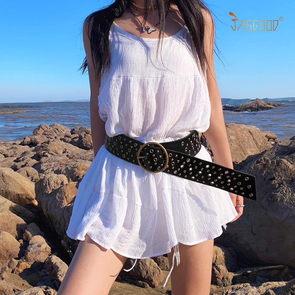 حزام جلدي عريض: يمكن مطابقة هذا الحزام الجلدي النسائي بسهولة مع جميع أنواع الملابس والمناسبات. لا يمكنها فقط تعزيز إحساسك العام بالتصميم، بل أيضًا إظهار شخصيتك الفريدة وأسلوبك الأنيق. سواء كان ملابس يومية أو حفلة عطلة، فهو مناسب جدًا لتجميع الملابس، خاصة لأزياء عيد الميلاد والهالوين.