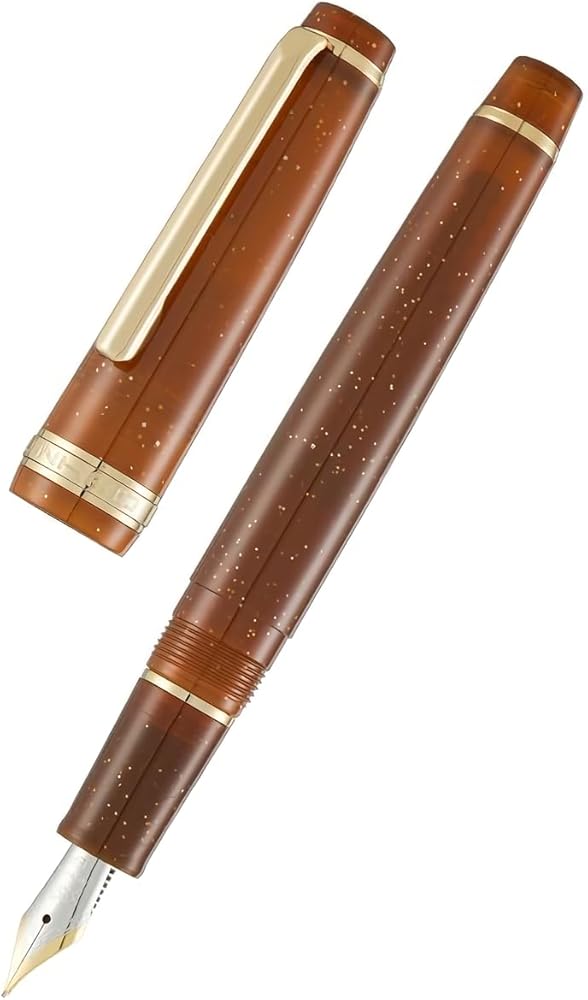 قلم حبر أكريليك Jinhao 82 ذو حواف ذهبية رفيعة مع محول حبر (سن رفيع، قهوة فلورسنت)