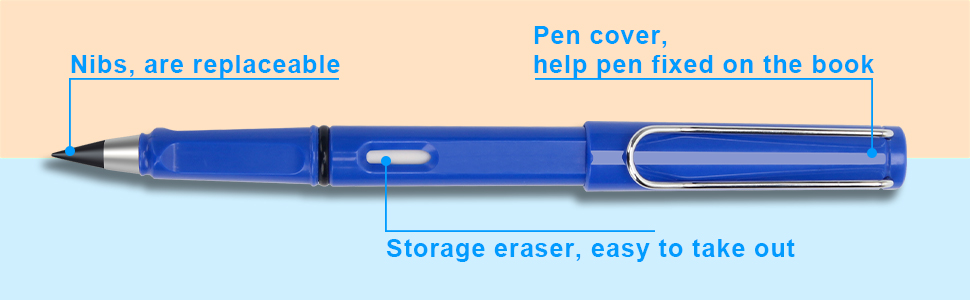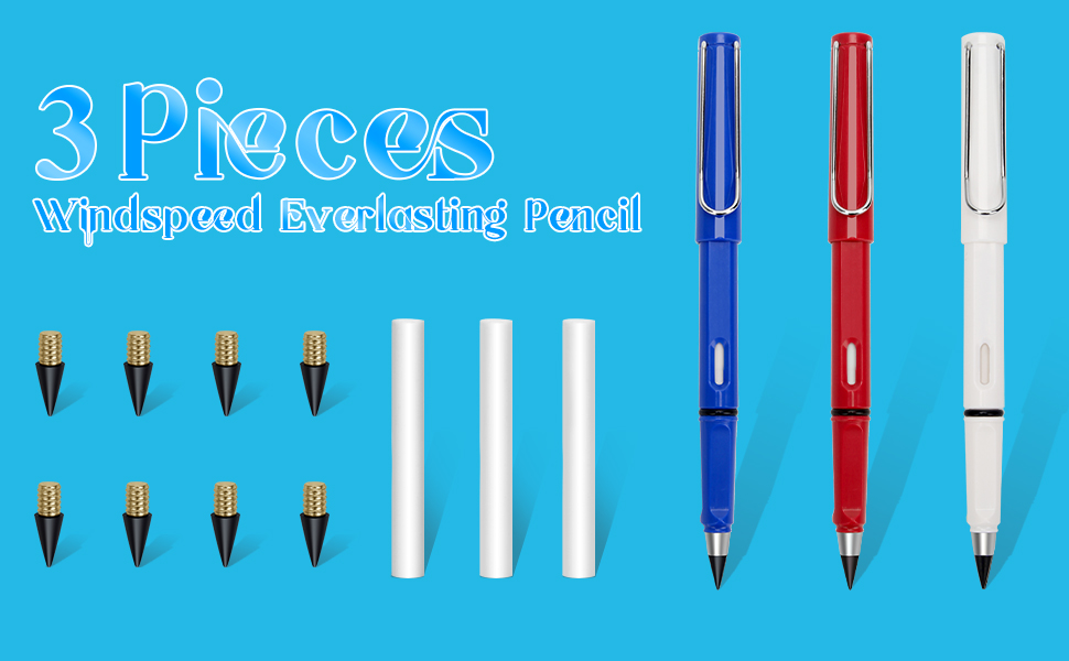 [تكاليف القطع]: يتمتع القلم الدائم المكون من 3 قطع بوقت استخدام طويل، ويمكن أن يكون وقت استخدام القلم الأبدي مكافئًا لوقت استخدام 100 قلم رصاص، مما يمكن أن يقلل بشكل فعال من التكاليف غير الضرورية. بالإضافة إلى ذلك، يوفر القلم الأبدي أيضًا 8 سنون قابلة للاستبدال لتستخدمها، وكل قلم يحتوي على ممحاة مدمجة.