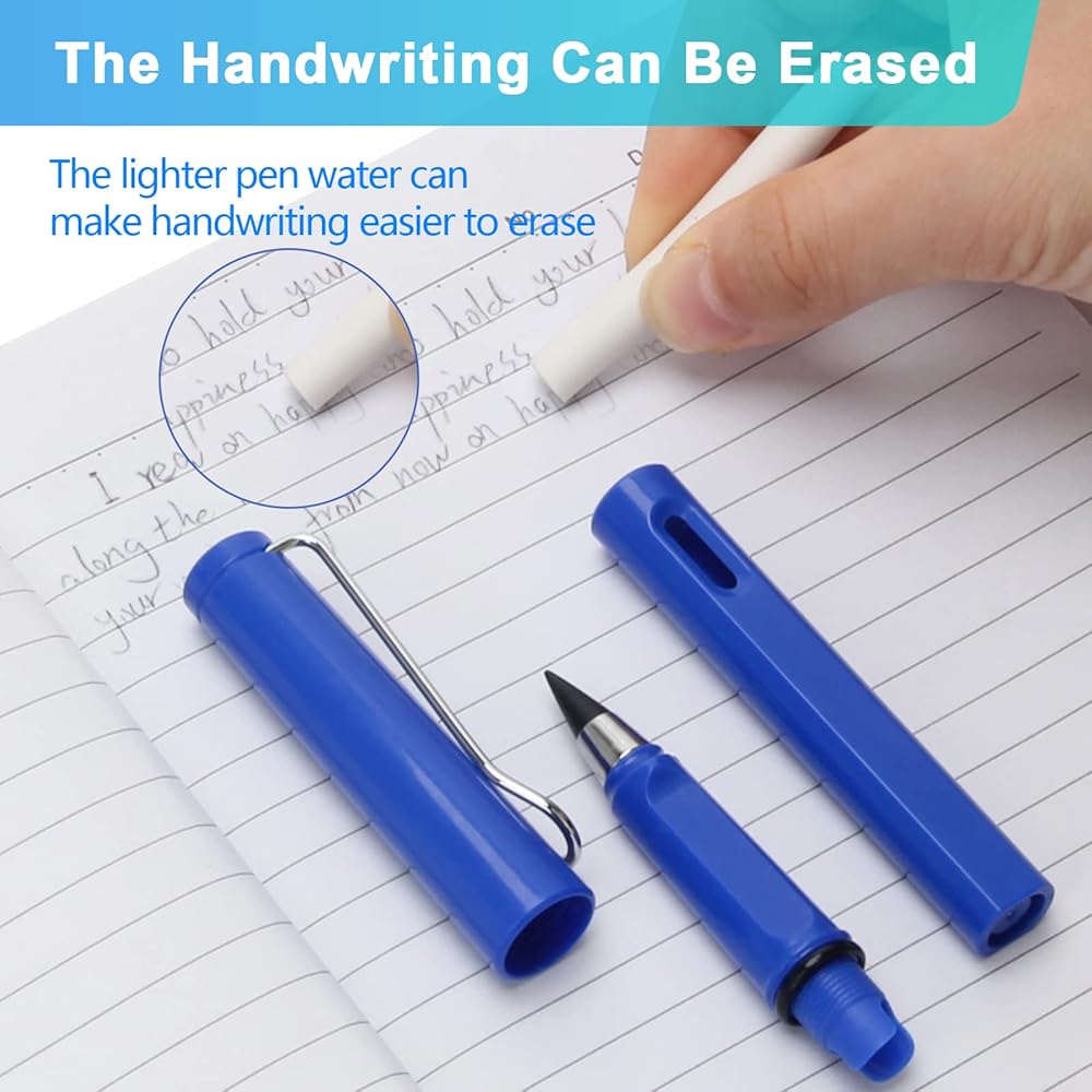 [لا يتطلب حبر]: بالمقارنة مع الأقلام وأقلام الرصاص التقليدية، لا يتطلب القلم الدائم حبرًا أو شحذًا، مما يمكن أن يمنع الطلاب من الخدش بواسطة مبراة القلم الرصاص ويمنع تلطيخ الملابس بالحبر. بالإضافة إلى ذلك، فإن ماء القلم الخفيف يمكن أن يجعل الكتابة اليدوية أسهل في المسح.