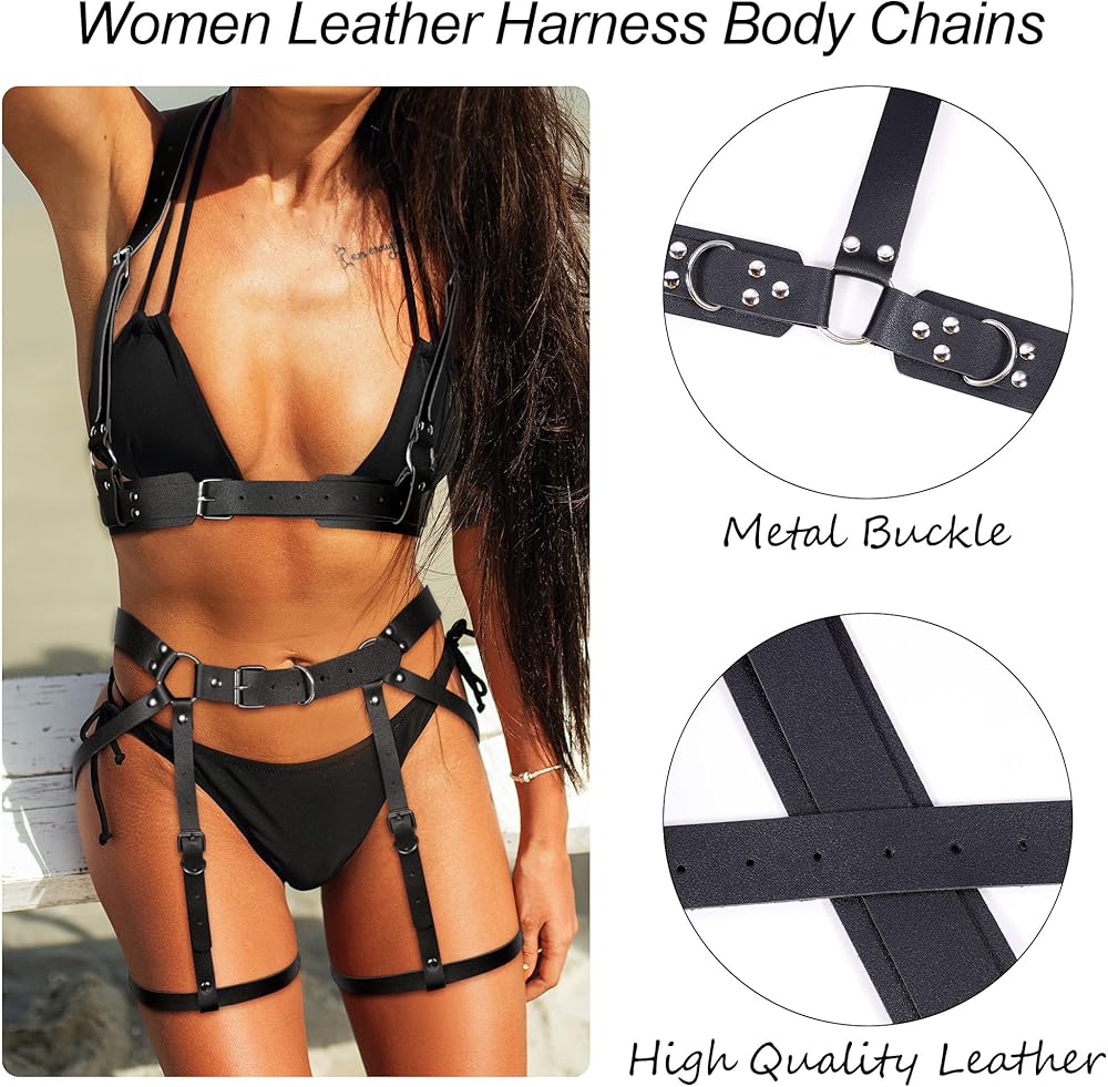 مواد عالية الجودة: مصنوعة من الجلد الفاخر والسبائك، سلاسل الجسم الجلدية هذه متينة وتدوم طويلاً. تضمن المادة الجلدية الناعمة ارتداءً مريحًا ولن تؤذي الجلد. سبيكة خفيفة الوزن تسمح لك بارتدائها طوال اليوم دون الشعور بعدم الراحة