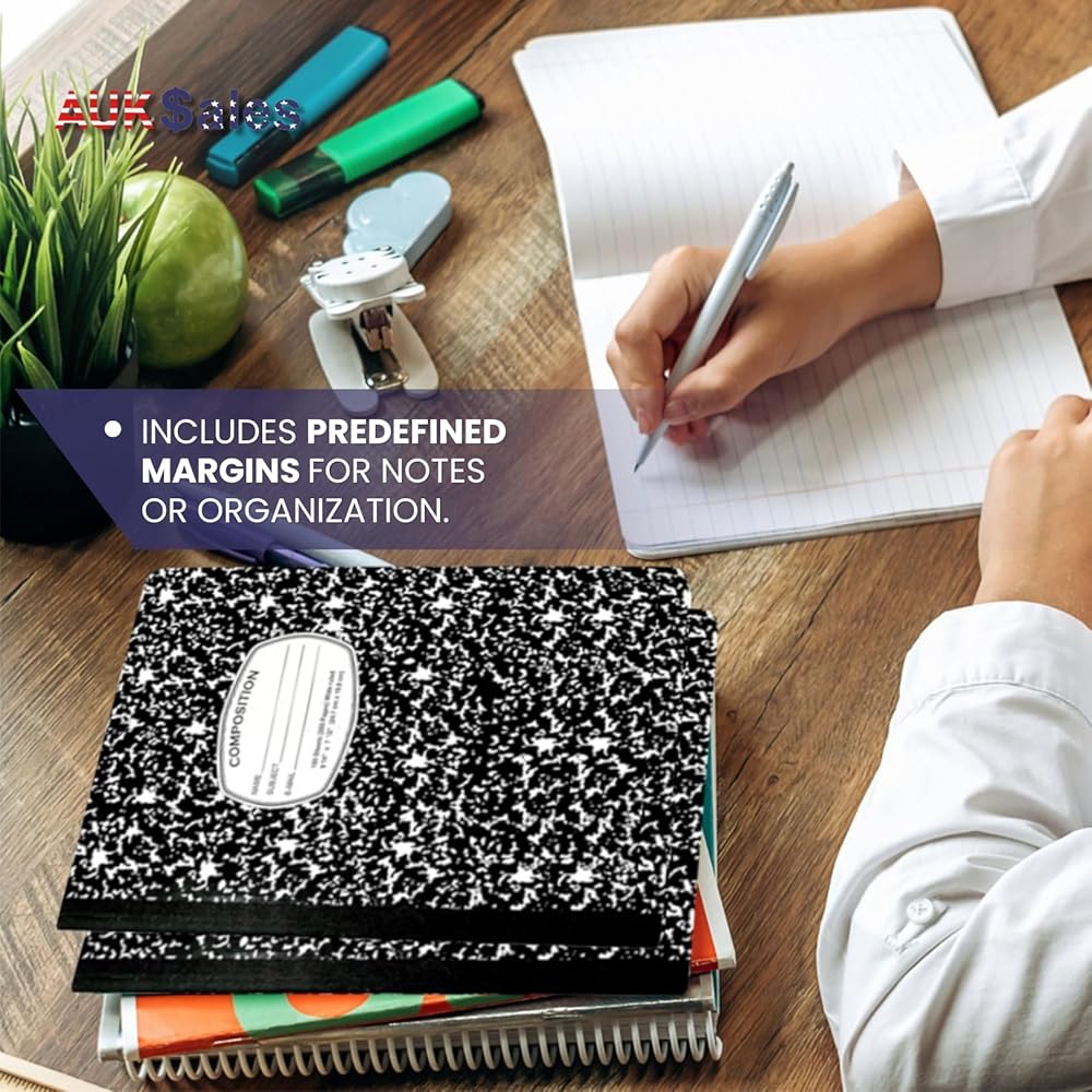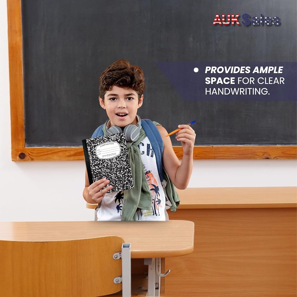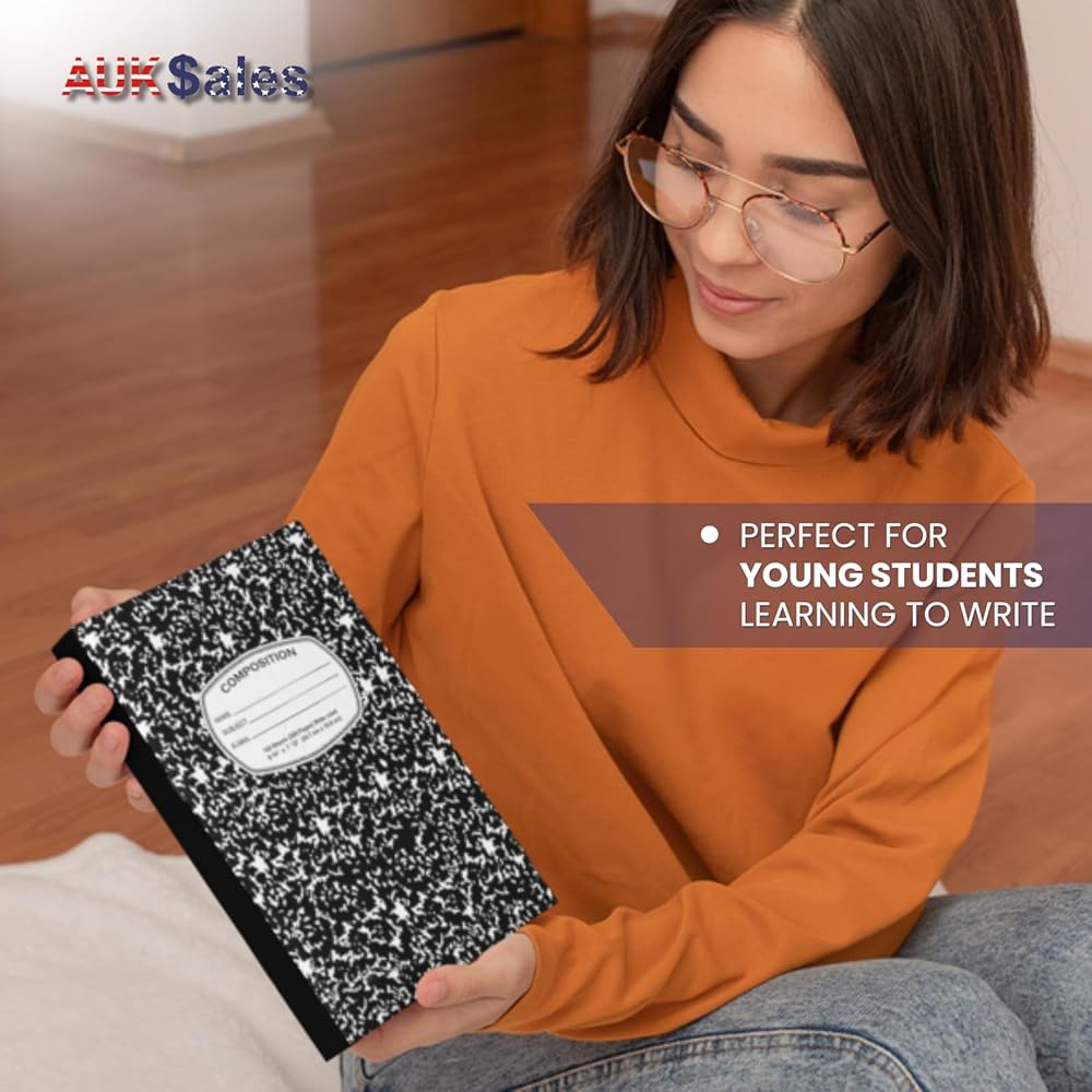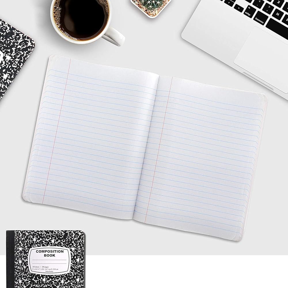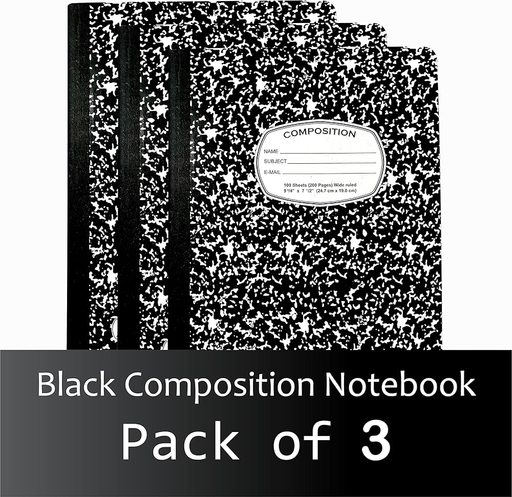 دفتر تكوين AUKSales، دفتر تكوين واسع، 3 عبوات، 9-3/4 بوصة × 7-1/2 بوصة، 100 ورقة، دفتر ملاحظات مدرسي من الرخام الأسود، دفاتر تكوين للمدرسة واللوازم المكتبية