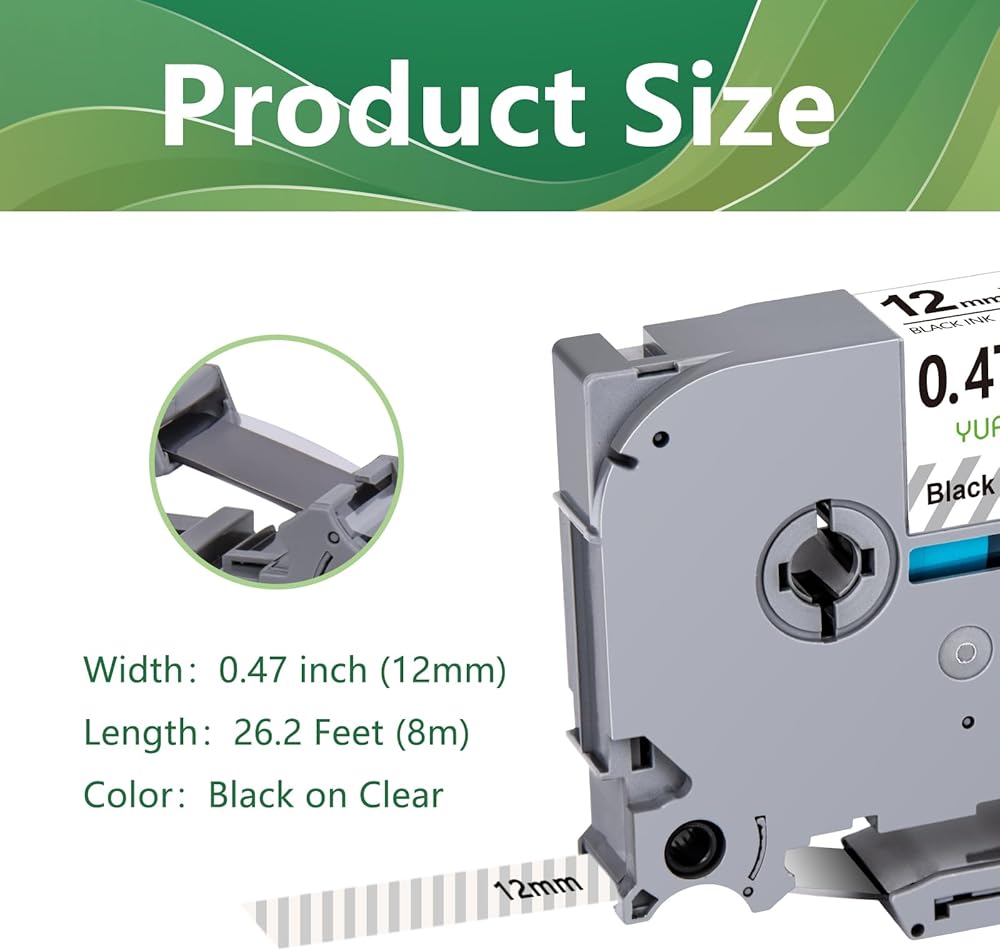 تتضمن الحزمة: 8-Pack YUANQIMM شريط ملصقات متوافق مع Brother Ptouch TZe-131 TZe131 TZ131 TZ-131 TZe TZ شريط 12 مم 0.47 شريط شفاف مغلف