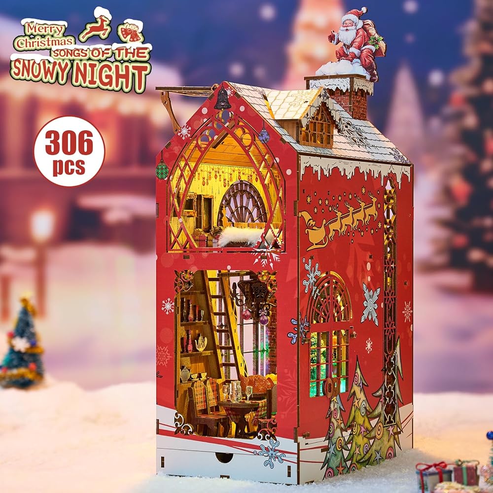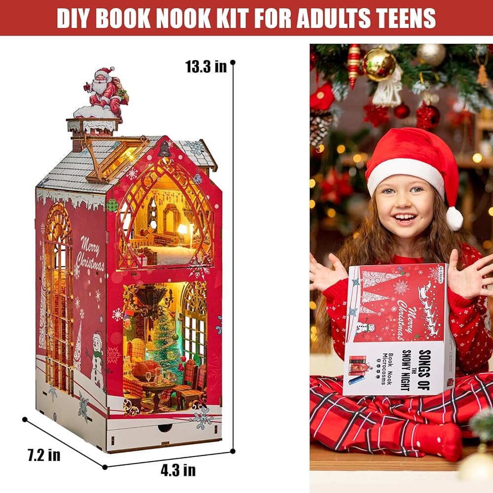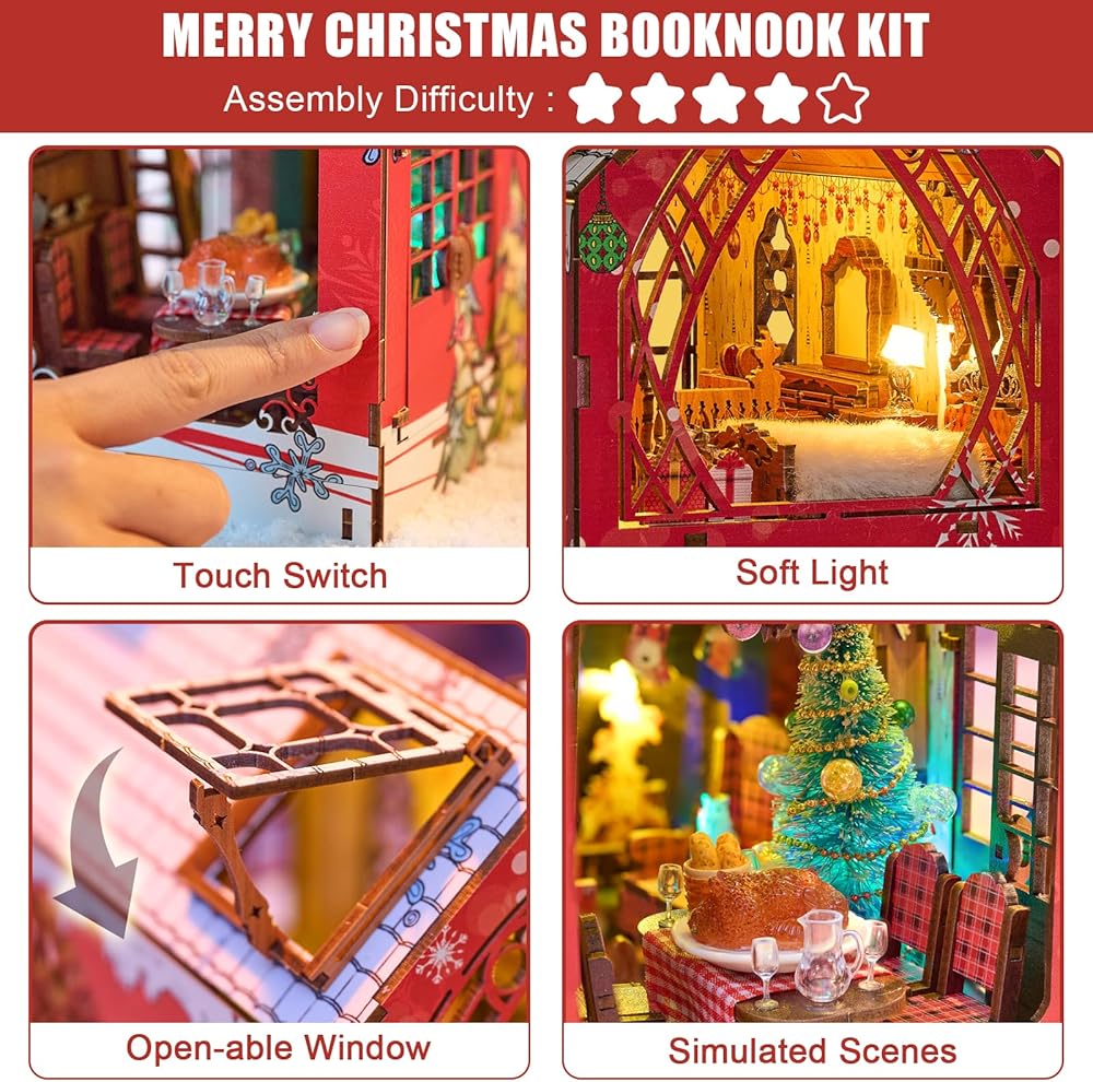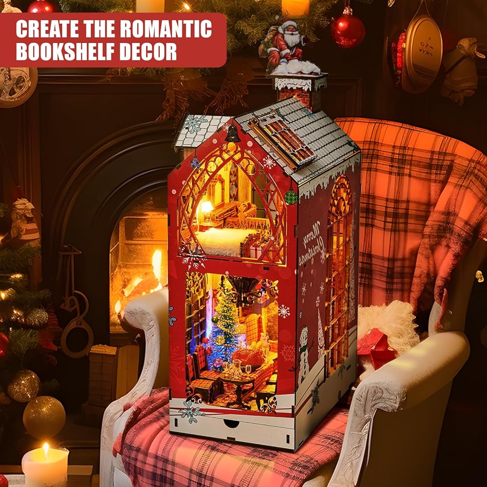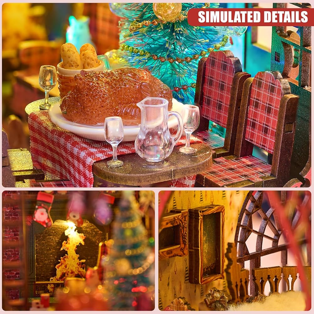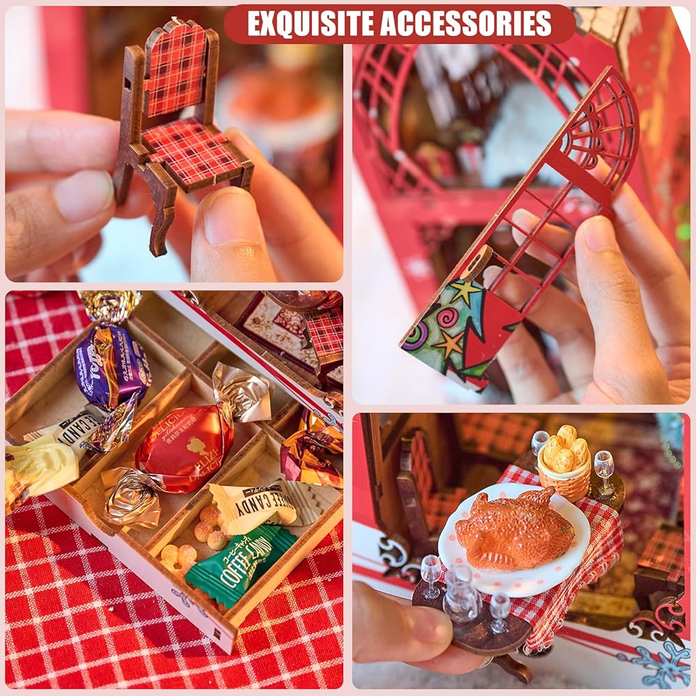 Exquisite DIY Miniature Dollhouse: This Christmas miniature dollhouse booknook kit is designed with 1:24 scale and it includes so many small components, just assemble it step by step according to the detailed instruction and you will get a exquisite handmade craft.
