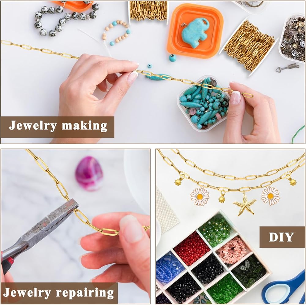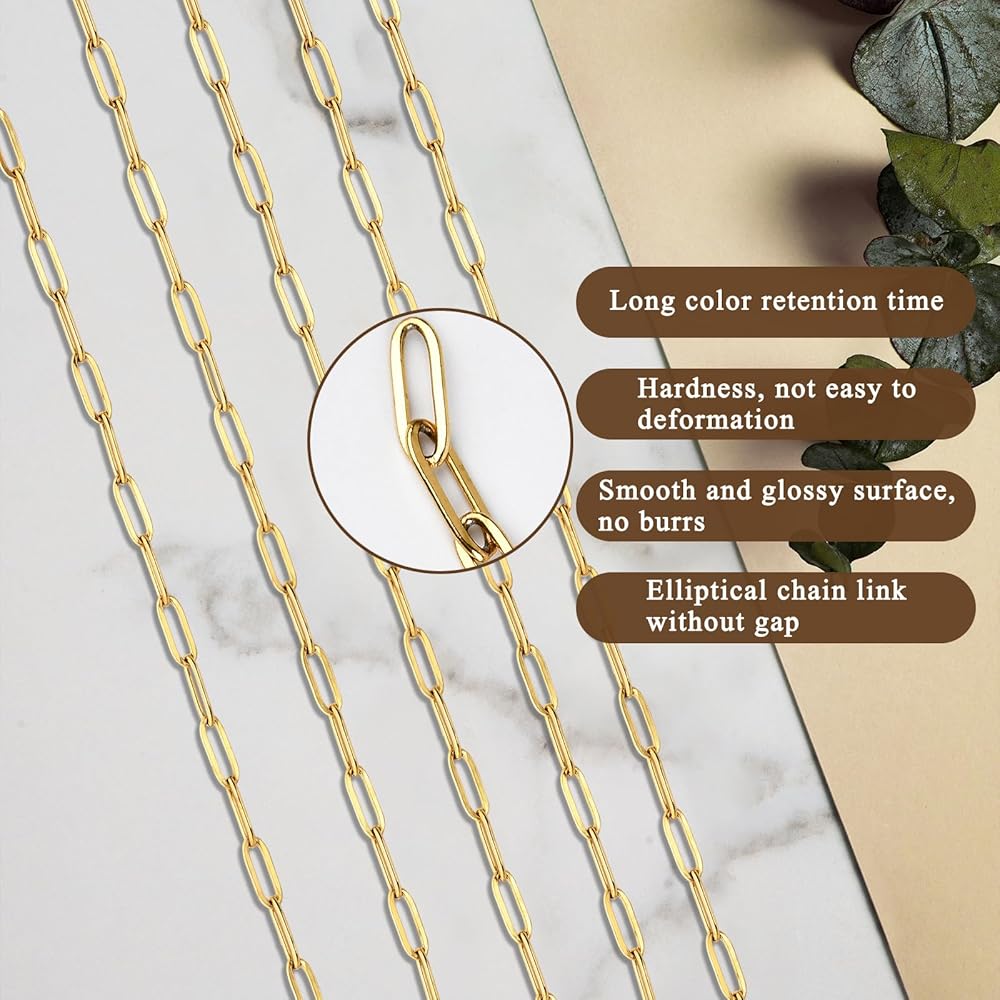 Quality Manufacturing: The chains for jewelry making are made of food grade 304 stainless steel, using vacuum plating process, so that the color can be more lasting. It has a certain hardness and will not be deformed when use it