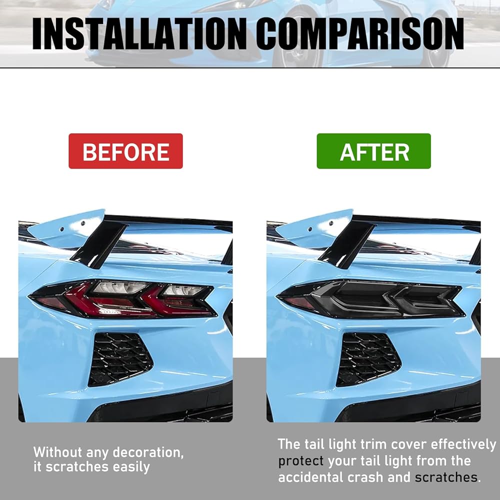 • 【Applicable Models】:The tail lights cover compatible with Chevrolet Corvette C8 Stingray/Z06/E-Ray 2020-2024, The size of the original car is customized.