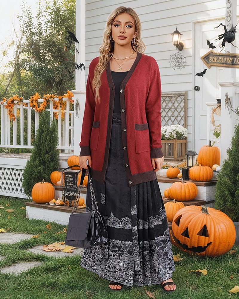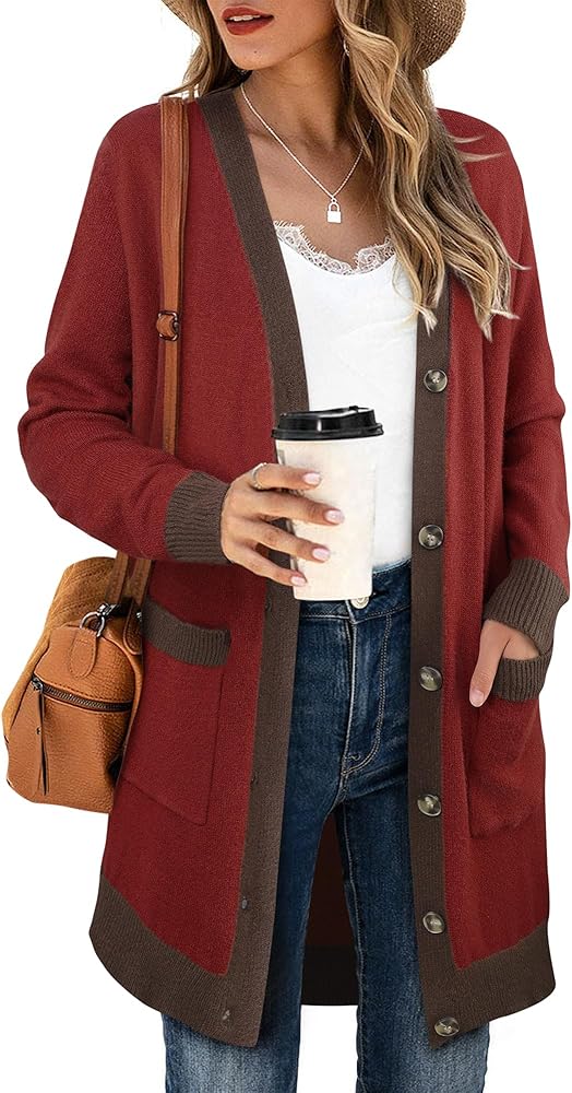 تصميم متباين الألوان: تتميز ملابس السترات الخريفية الأنيقة والمعاطف المنزلية بألوان ثابتة وطباعة فريدة، ورقبة على شكل قلب على شكل حرف V، مفتوحة من الأمام مع زر لأعلى، وطول فوق الركبة، وجيوب جانبية عملية يمكنها حمل الأشياء لك عندما تذهب معاطف سترة فضفاضة تناسب النساء