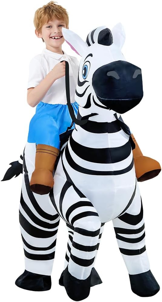 • 【جودة ممتازة】زي الحمار الوحشي القابل للنفخ للأطفال في أزياء الهالوين مصنوع من البوليستر 190T. لقد قمنا بمضاعفة التحقق من الجودة. يمكن للمنافيخ القوية نفخ الهواء بسرعة في ثوانٍ وتفريغه بسرعة أيضًا. ارتداء زينا القابل للنفخ سيكون له تجربة احتفالية جيدة!