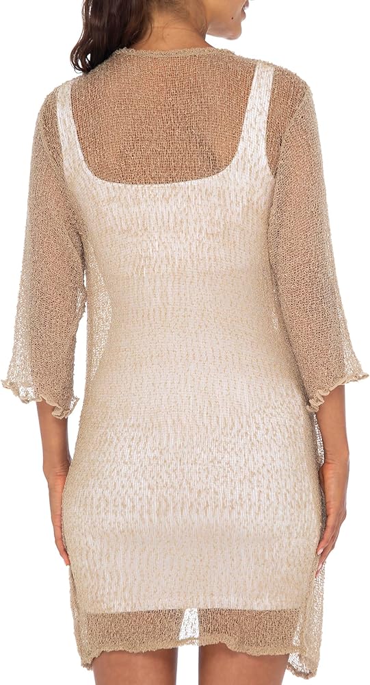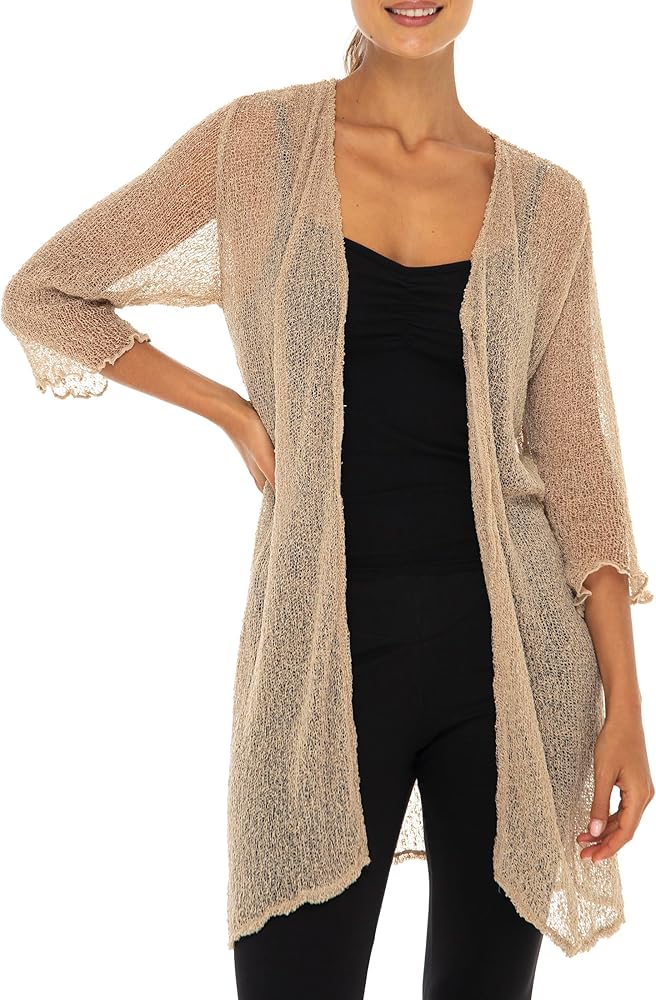 تضيف سترة طويلة شفافة بلون بني موكا لمسة من الأناقة إلى أي جماعة لإضفاء لمسة أنثوية جميلة. تبدو هذه السترة الشبكية خفيفة الوزن والمفتوحة من الأمام جميلة على الفساتين بدون أكمام أو القمصان بدون أكمام أو الجينز أو السراويل الضيقة أو السراويل أو كغطاء لملابس السباحة