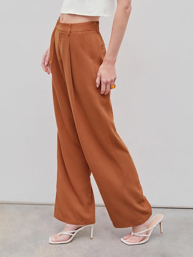ملاءمة مريحة: مع خصر متوسط الارتفاع وقماش منسوج غير قابل للتمدد، توفر هذه السراويل مقاسًا مريحًا يتحرك معك طوال اليوم. تضيف التفاصيل المطوية لمسة من الأناقة مع ضمان سهولة الارتداء.