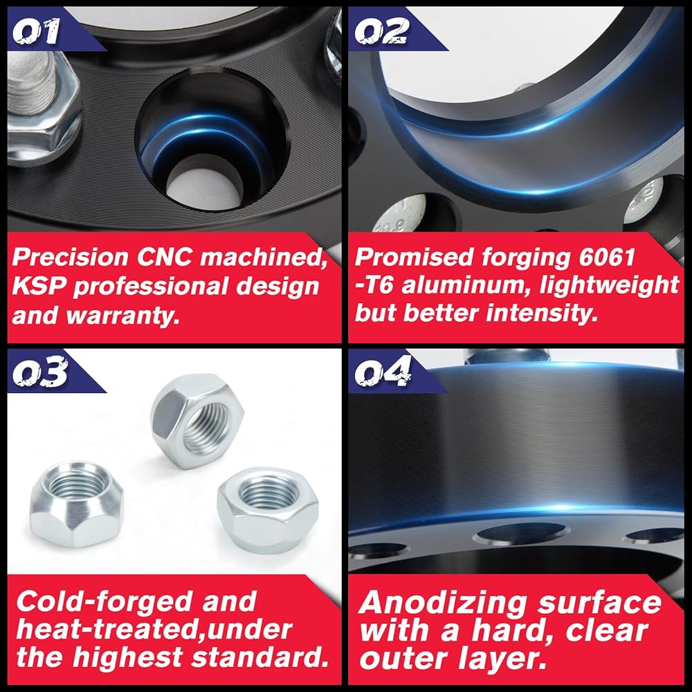 جودة البناء: هذه الفواصل ذات العجلات 5 × 4.5 مصنوعة باستخدام الحاسب الآلي باستخدام قضبان الألومنيوم 6061-T6، وهي أخف وزنًا ومتينة وقوية للغاية. يمكن للبراغي الهندسية المعالجة بالحرارة والمقواة بدرجة 10.9 أن توفر القوة وتزيل مخاطر الاهتزازات بكفاءة. يوفر السطح المؤكسد الأسود مقاومة إضافية للتآكل.