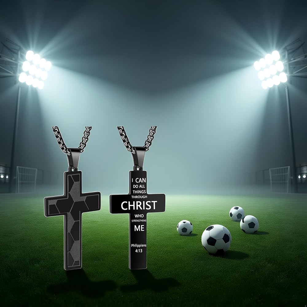 • تصميم فريد: الجزء الأمامي عبارة عن نمط كرة قدم جميل، والجزء الخلفي هو جوشوا الملهم 1:9 "كن قويًا وشجاعًا". الجمع بين شغف كرة القدم والرموز الروحية. هذه القلادة هي هدية رائعة للاعبي كرة القدم وفرق كرة القدم ومشجعي كرة القدم.