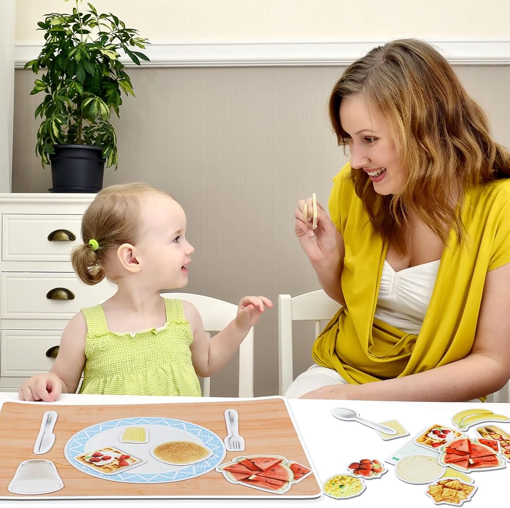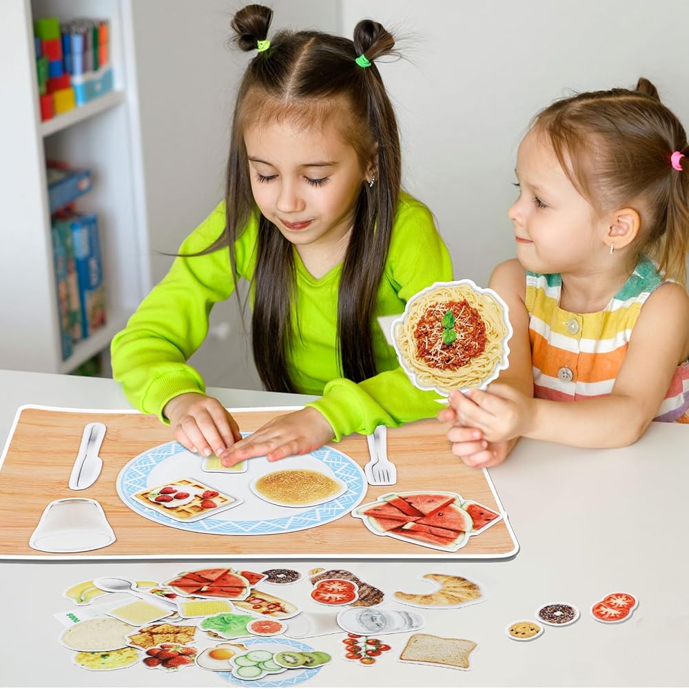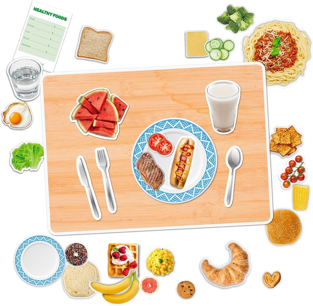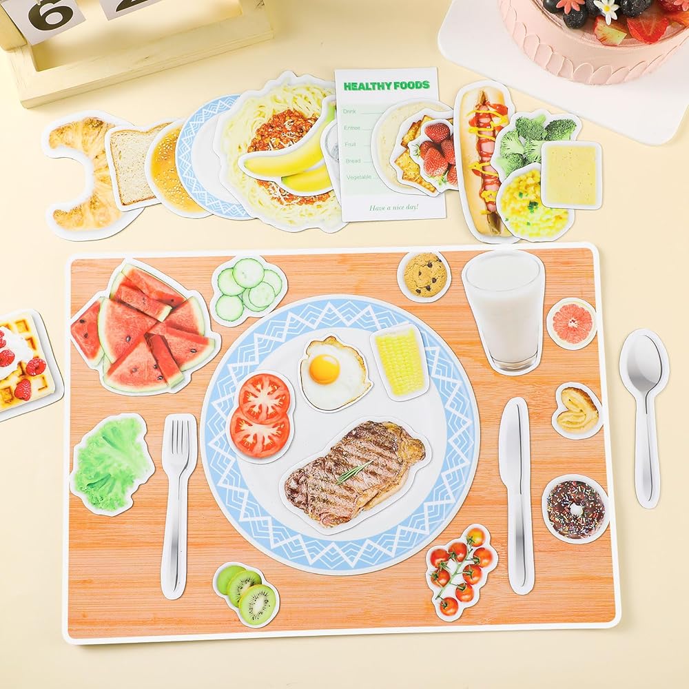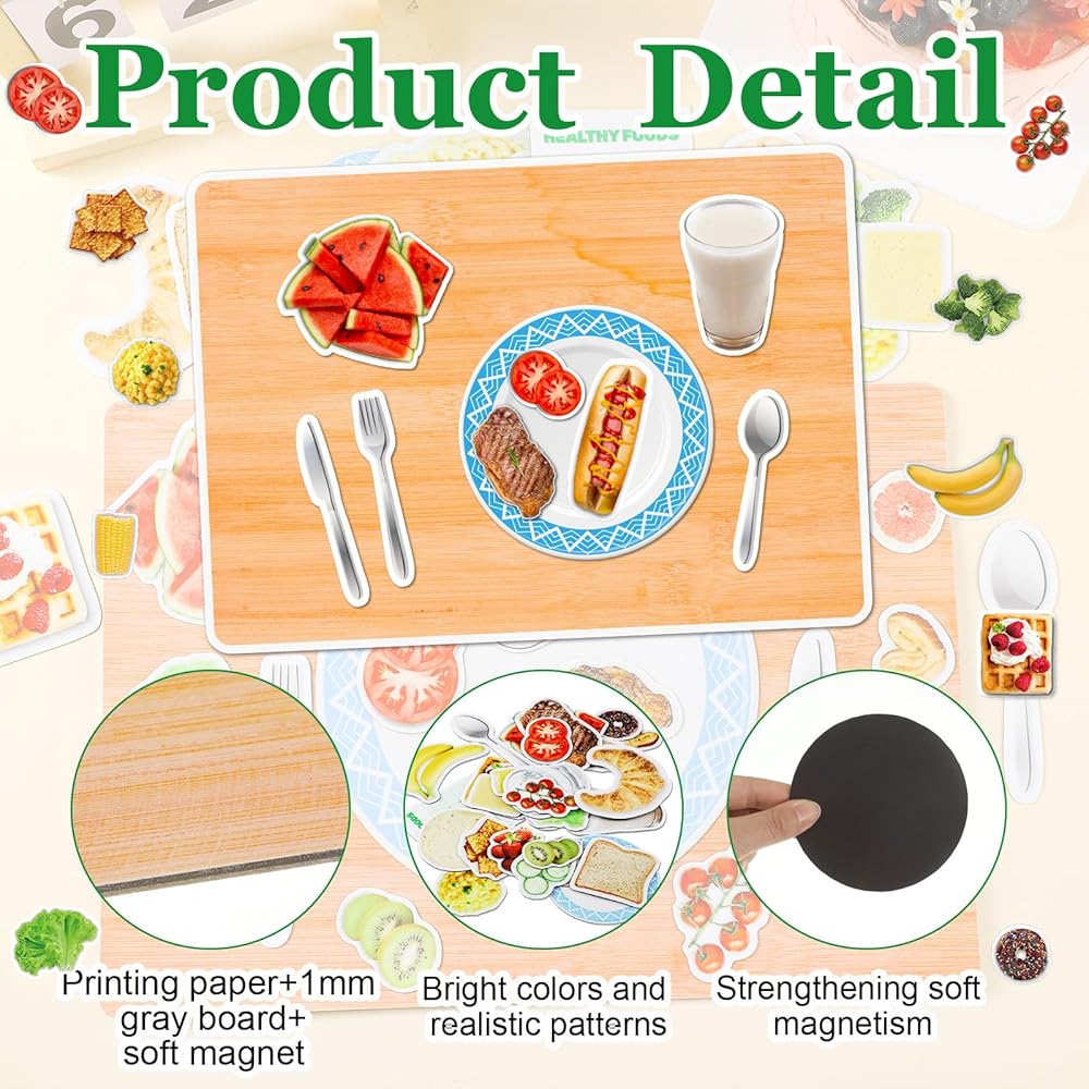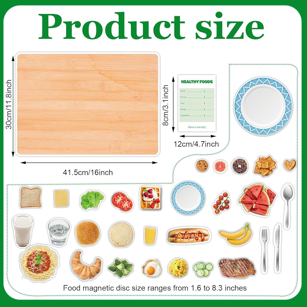 Comprehensive Kit for Healthy Eating Habits: this entire package includes 33 food magnets of different realistic food shapes and sizes, a magnetic placemat, and a paper writing list; It's a toolkit specially designed to guide and encourage healthy eating habits in children, transforming meal times into an educational and engaging experience