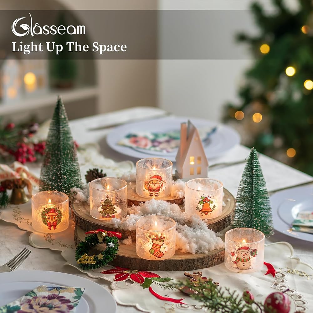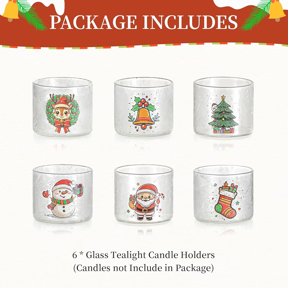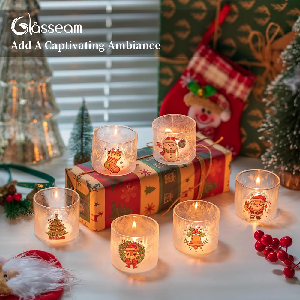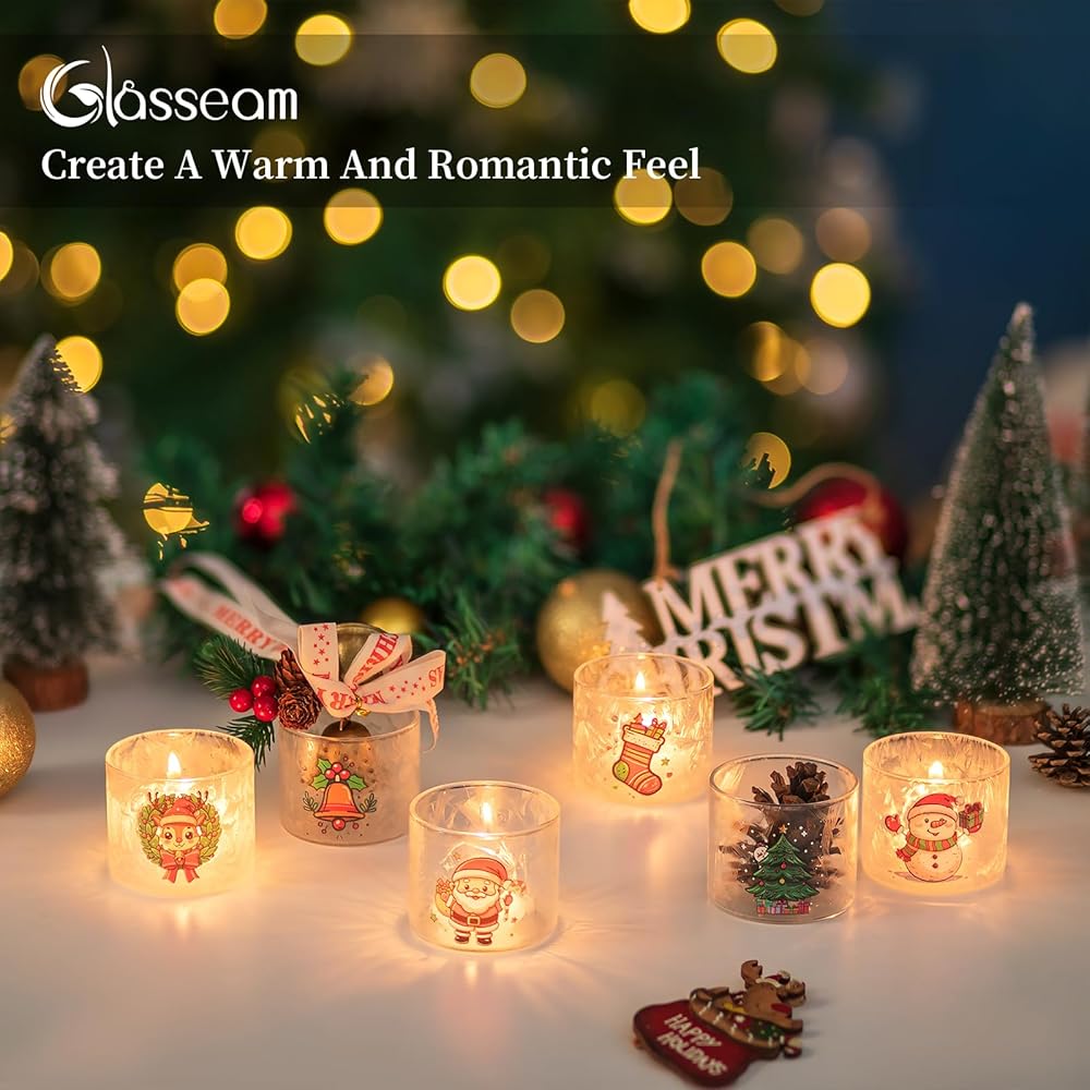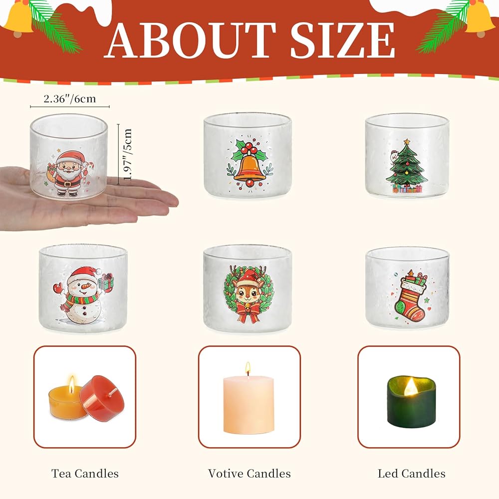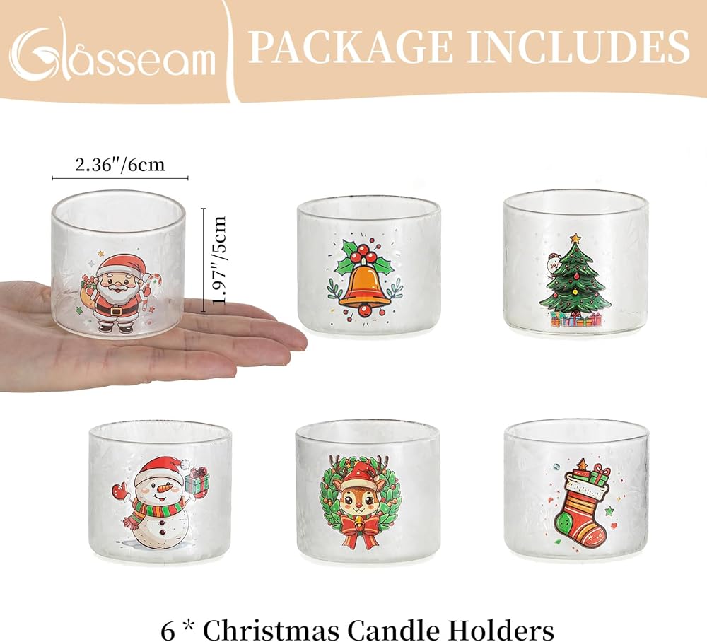 Glasseam عيد الميلاد Tealight شمعة حامل: الزجاج حاملي الشموع نذري مجموعة من 6 الزخرفية أضواء الشاي حامل شمعة لشموع جرة لطيف حاملي الشموع الصغيرة لجدول محور حزب ديكور المنزل هدية