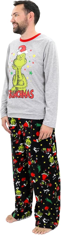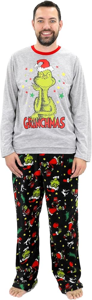 Embrace the spirit of Grinchmas with Dr. Seuss' the Grinch matching family pajama set! This delightful collection offers something for everyone, from a cozy footed blanket sleeper for infants to two-piece sets for mom, dad, and the kids. Imagine the joy of snuggling up together in these ultra-soft, plush polyester pajamas, adorned with the iconic Grinch character. The infant blanket sleeper features an all-over print of the Grinch, ensuring your little one stays warm and festive. The adult and kids' sets consist of a long-sleeve top showcasing the Grinch's face with 'Grinchmas' underneath, paired with plush pajama pants covered in an all-over Grinch print. With these pajamas, you'll be ready to create cherished family memories, whether posing for holiday photos or simply lounging around the house. Made of 100% polyester for easy care and lasting comfort, this matching set is a must-have for any Dr. Seuss fan. Get ready to embrace the holiday spirit and let your Grinchy side shine!
