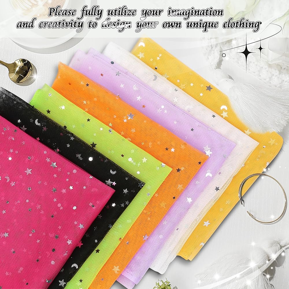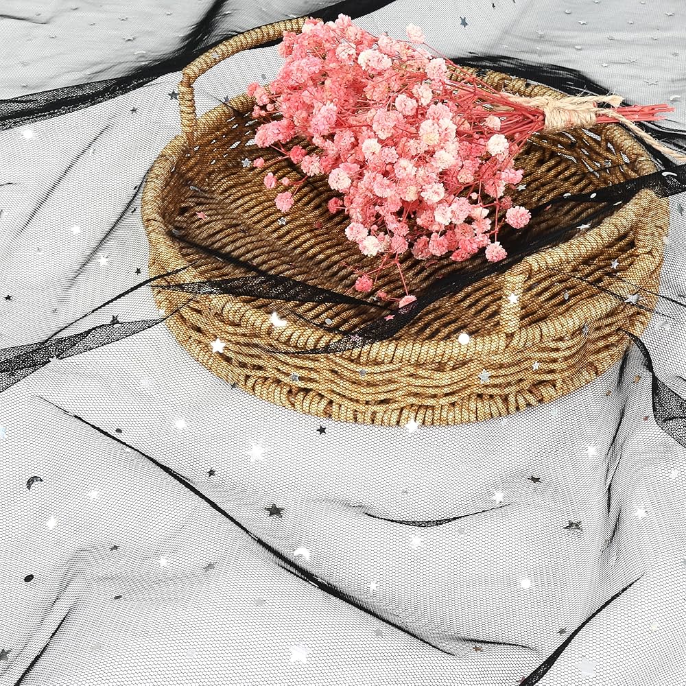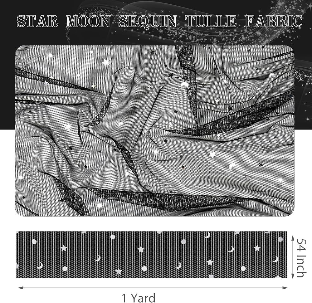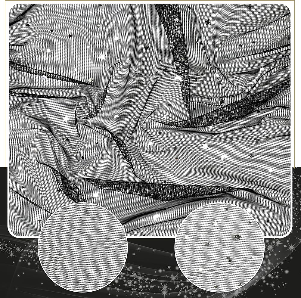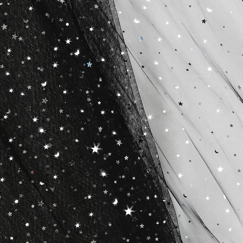 • WIDE USE SCENARIOS - By upgrading the production process, we have added sequins in the shape of stars and moons on top of the sheer tulle fabric, which will glow beautifully in the light, and the dreamy decoration can create a romantic atmosphere for you. Sequin tulle fabric is suitable for making table runners, table skirts, stairs bow, wedding backgrounds, bridal veil skrit.