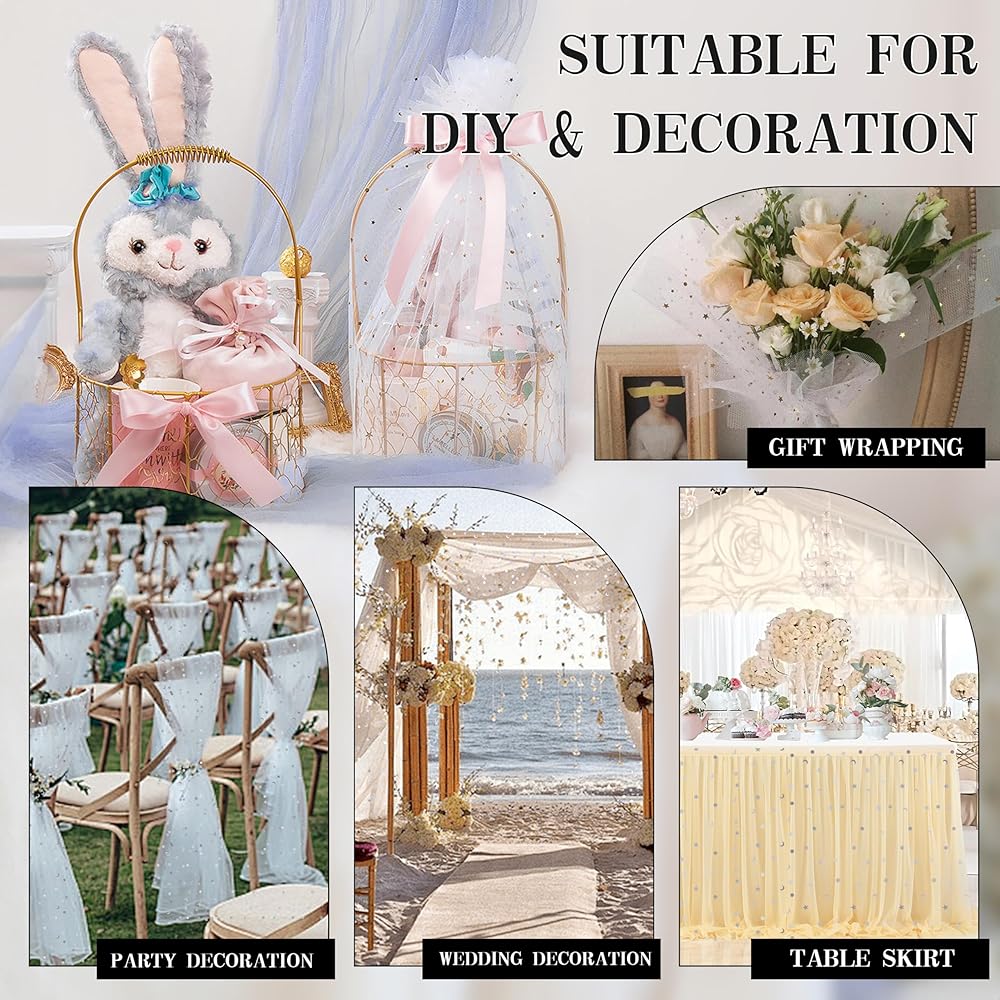 • GIFT WRAPPING - Wedding tulle fabric is easy to cut and can be used as gift wrapping for Valentine's Day, Father's Day, Mother's Day, Christmas, Halloween, wedding anniversaries, bridal/baby showers, birthdays, Easter and other events.