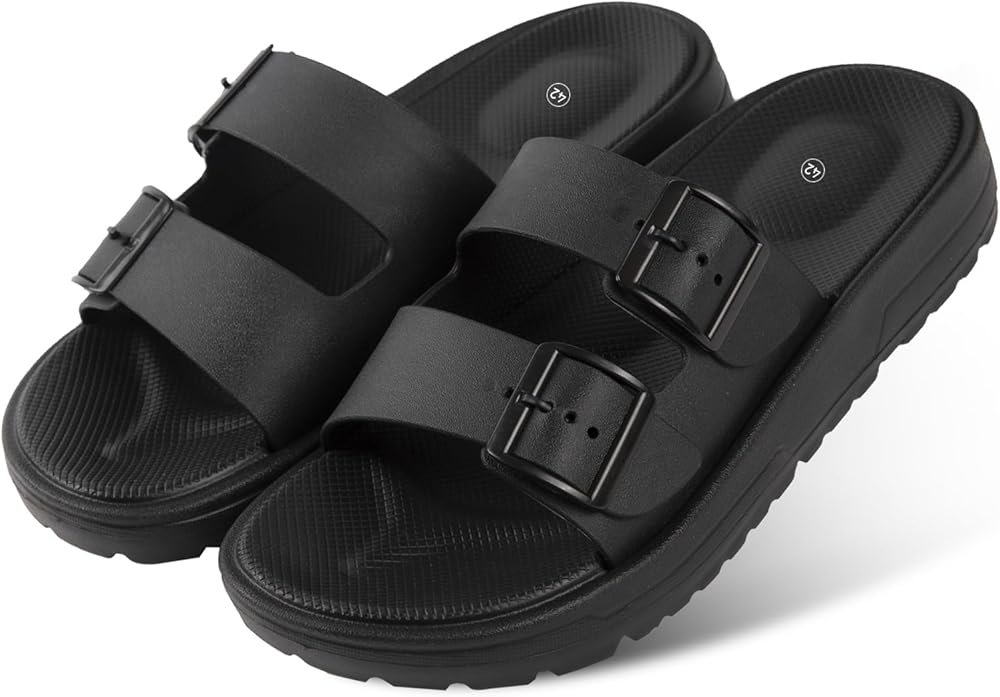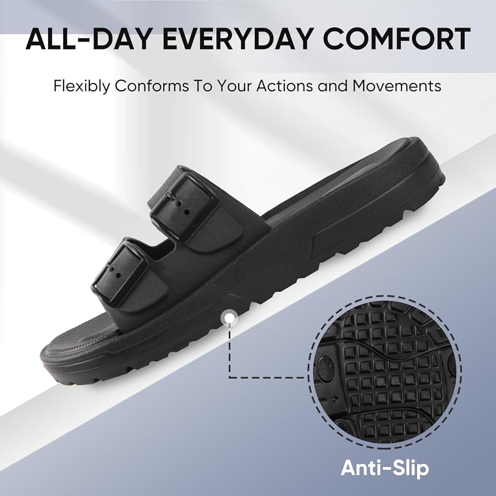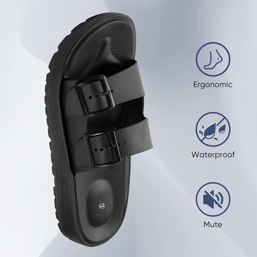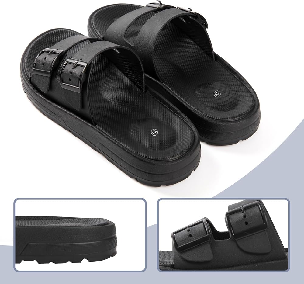 • تصميم عصري بإبزيم مزدوج: تأتي صنادلنا بتصميم مشهور بإبزيم مزدوج قابل للتعديل مما يسمح لك بتعديل عرض قدمك حسب الراحة. مثالية لأي مناسبة - داخلية أو خارجية.