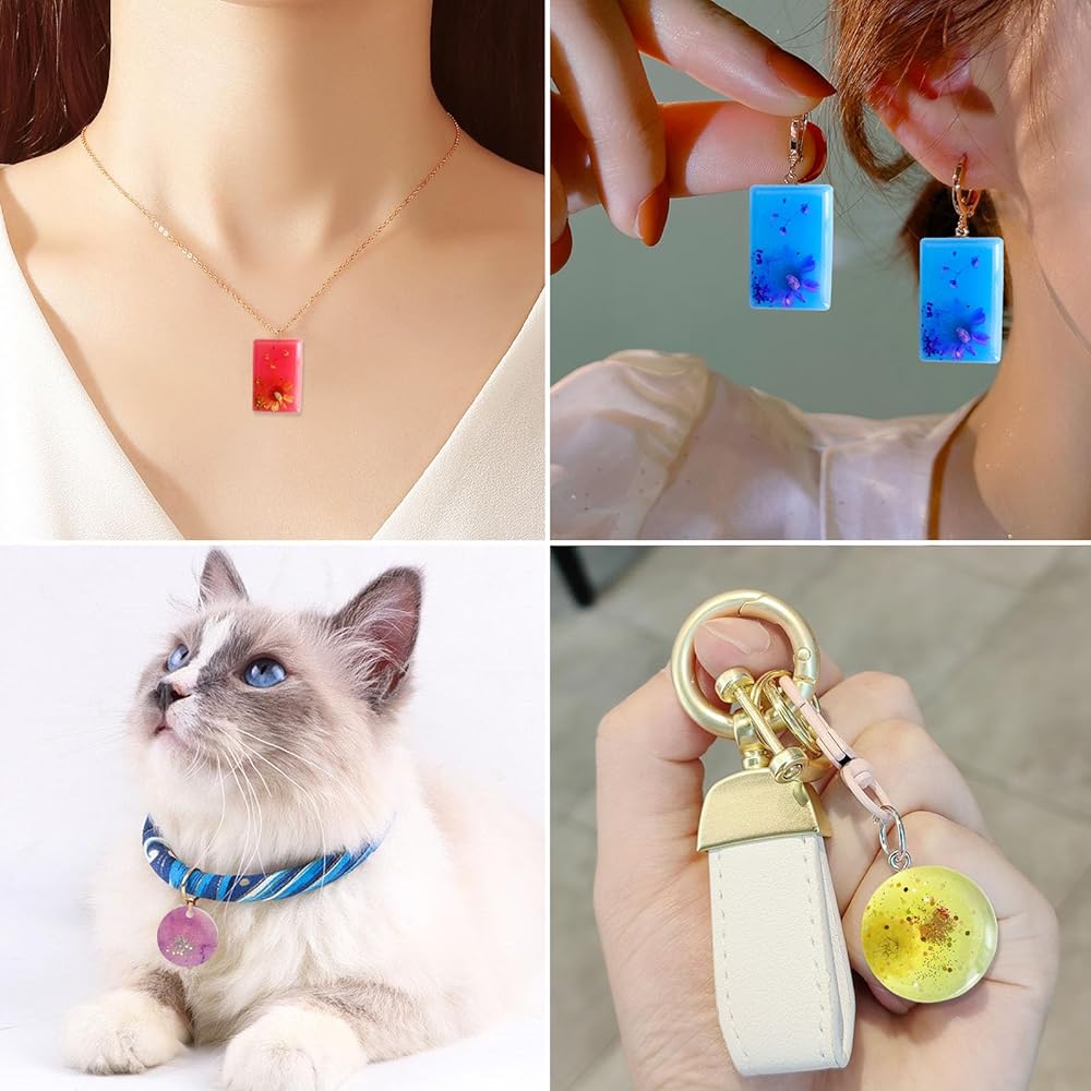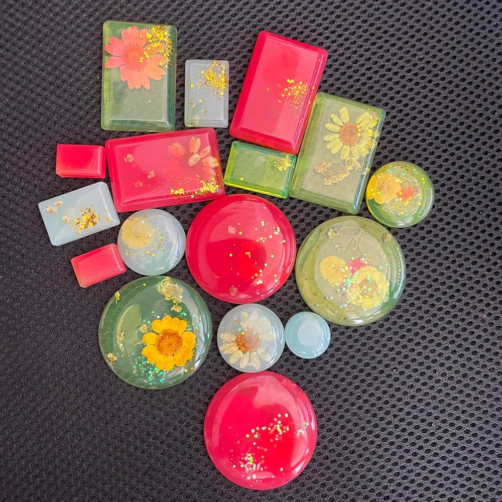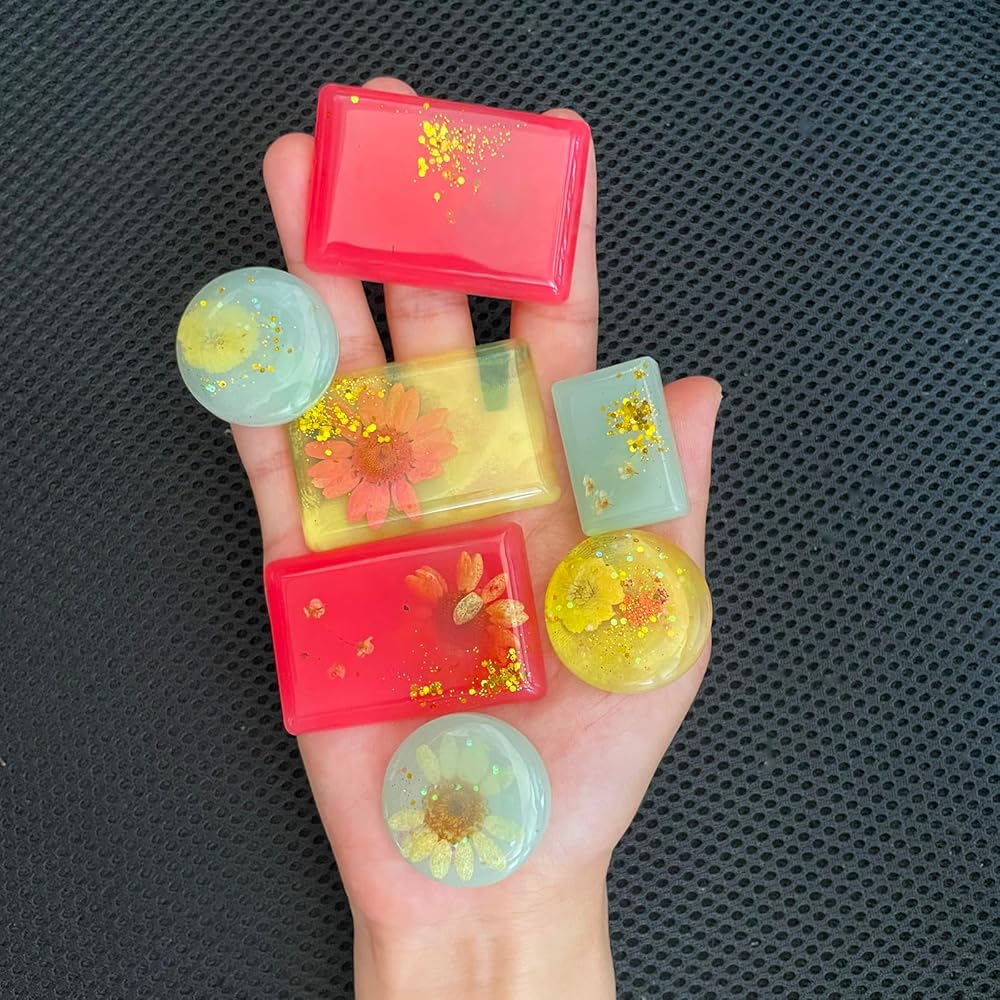 سهل الاستخدام: ما عليك سوى صب سائل الراتنج المنصهر في القالب الحرفي، واتركه يصلب، ثم يمكنك إزالة القالب. يمكنك إضافة لمعان أو زهور مجففة صغيرة أو حلى أو زخارف إلى قالب السيليكون، اصنع حرفك الفريدة. رائعة لعشاق الأعمال اليدوية.