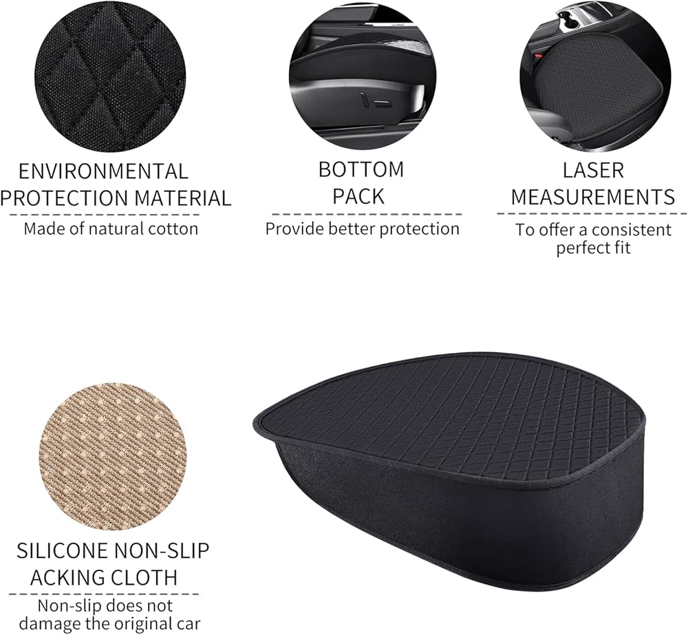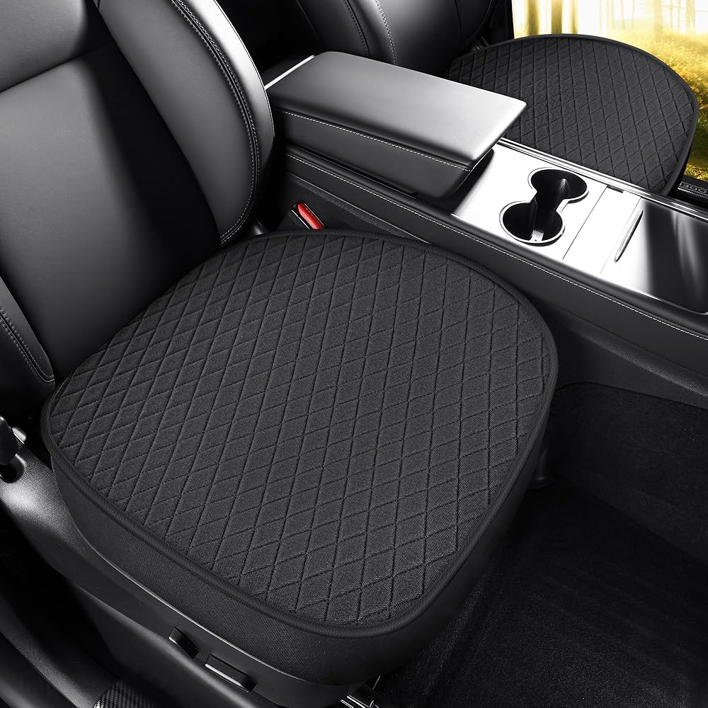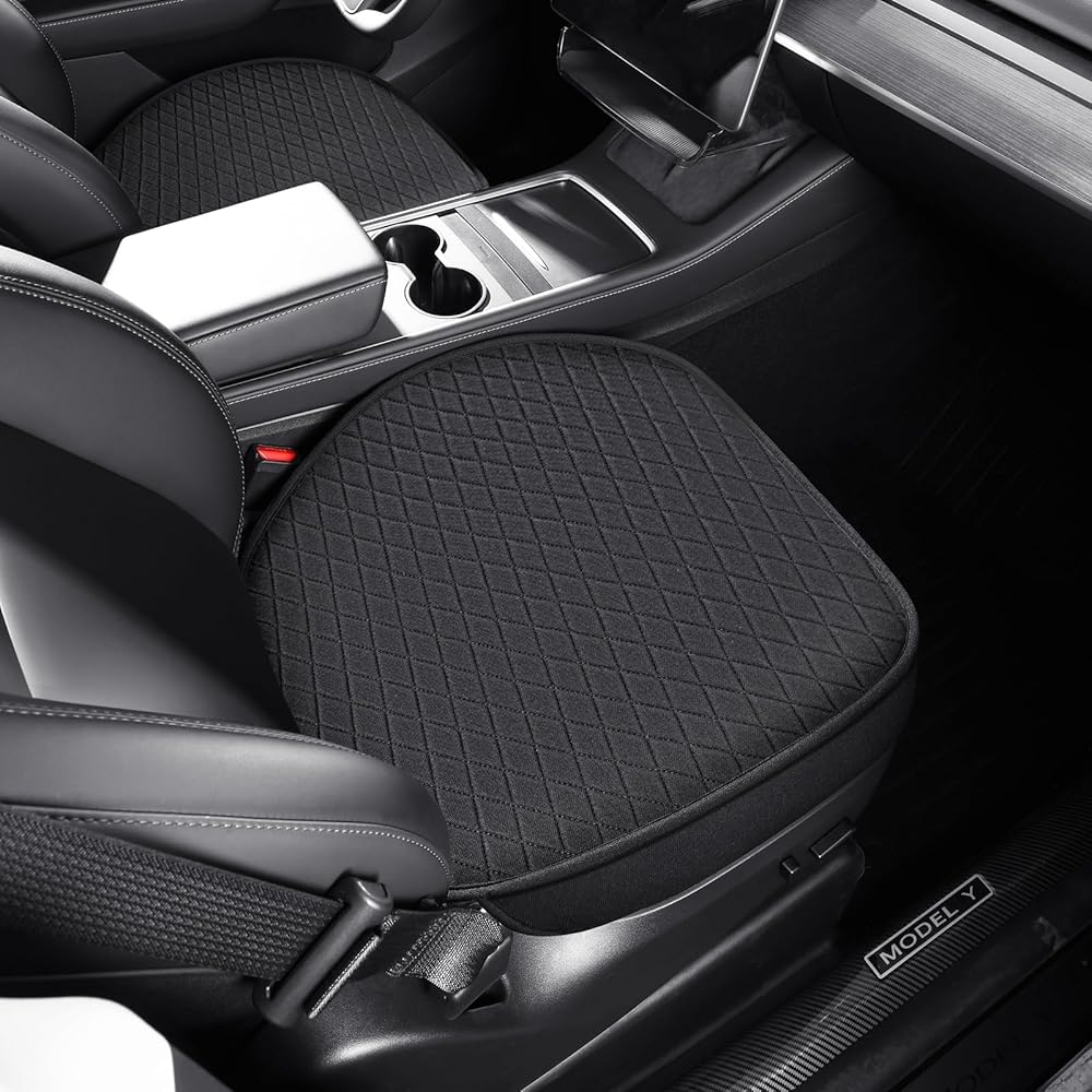 عبوتان من أغطية المقاعد السفلية لطراز Tesla Y 2024 2023-2020، أغطية مقاعد أمامية للسيارة فائقة التهوية وناعمة، أغطية مقاعد سفلية من القطن والكتان لطراز Tesla Y (أسود)