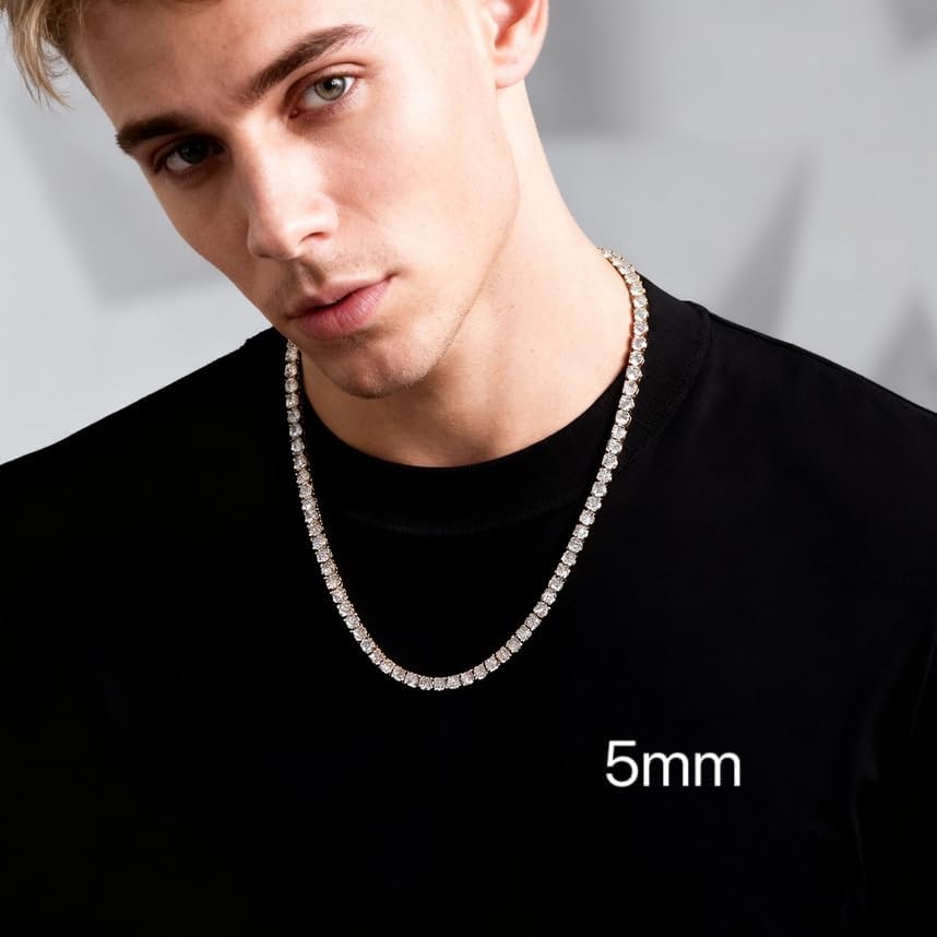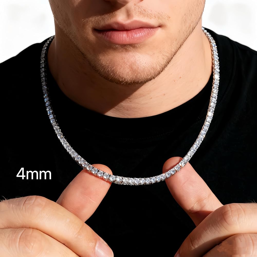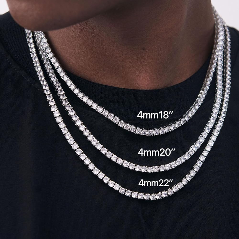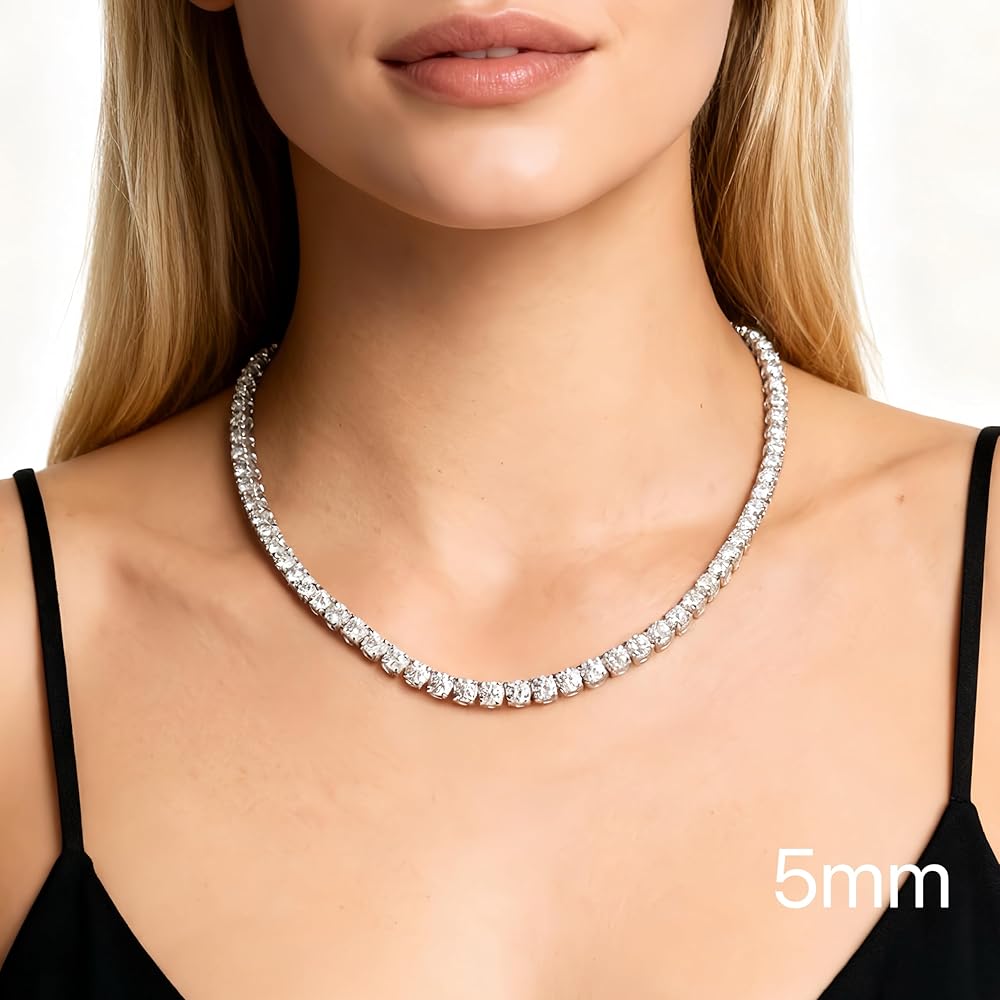 قلادة تنس للنساء والرجال 4/ 5mm 1 صف من سلسلة التنس المصنوعة من الفولاذ المقاوم للصدأ سلسلة 5A+ Zirconia المثلجة المثلجة لا تتلاشى لا تتلاشى أو سوار -مع صندوق الهدايا