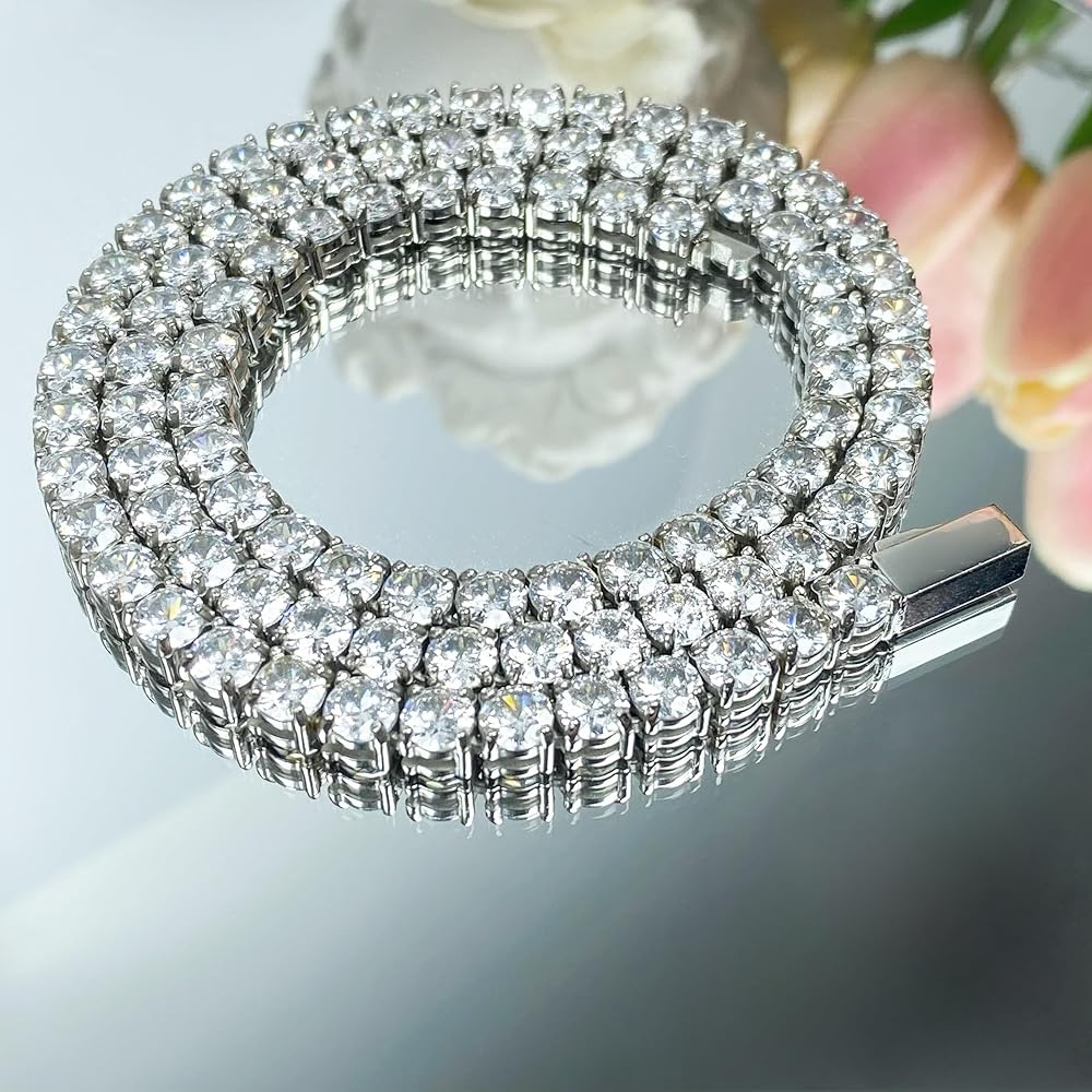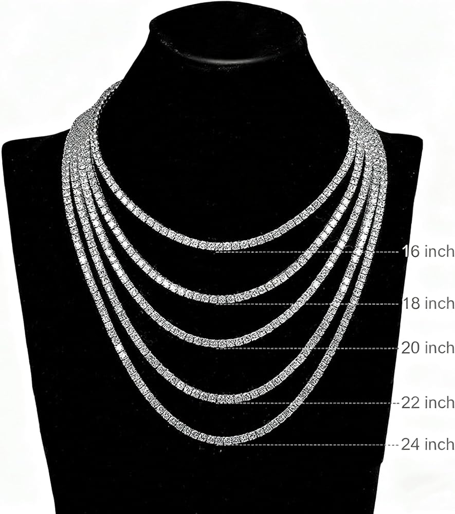 ♥😍 تناسب جميع الرجال والنساء 😍♥→ سلسلة التنس ZSLLZM تتضمن 8 مقاسات طول (7.5/8.0/8.5/16/18/20/22/24/) ومقاسين للعرض: 4 مم/5 مم. يمكنك ارتداء هذه القلادة بمفردها أو مع قلادة على شكل طية صدر السترة، وستضيف مظهرًا أنيقًا ورشيقًا لأي مناسبة خاصة. تناسب جميع الرجال والنساء. إذا كانت لديك أي أسئلة حول حجم القلادة، فيرجى الاتصال بنا لمساعدتك في العثور على المقاس المثالي.