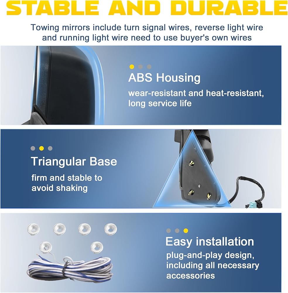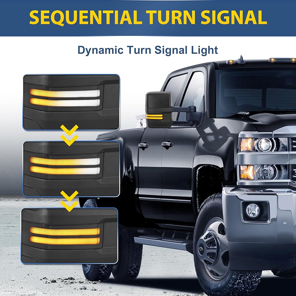 مرايا السحب مسخنة بالطاقة متوافقة مع 2003-2006 تشيفي جي إم سي يوكون سيريا سيلفرادو تاهو سوبربان مع إشارة انعطاف متتابعة عكس الضوء الأبيض تشغيل المرايا الجانبية 2 قطعة (أسود)