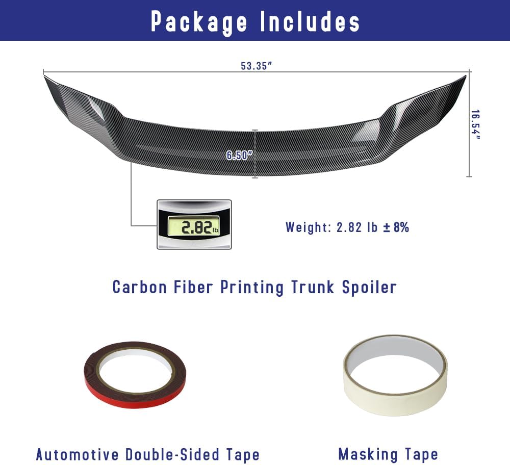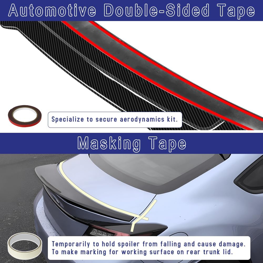 تتضمن العبوة: جناح خلفي للسيارة × قطعة واحدة، شريط لاصق على الوجهين × قطعة واحدة وشريط لاصق × قطعة واحدة.