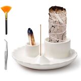 مجموعة حامل بخور سيراميك فريدة من نوعها: تحتوي كل مجموعة على حامل بخور سيراميك وفرشاة هدايا وملاقط من الفولاذ المقاوم للصدأ. (حزم المريمية البيضاء وعصي بالو سانتو غير متضمنة).