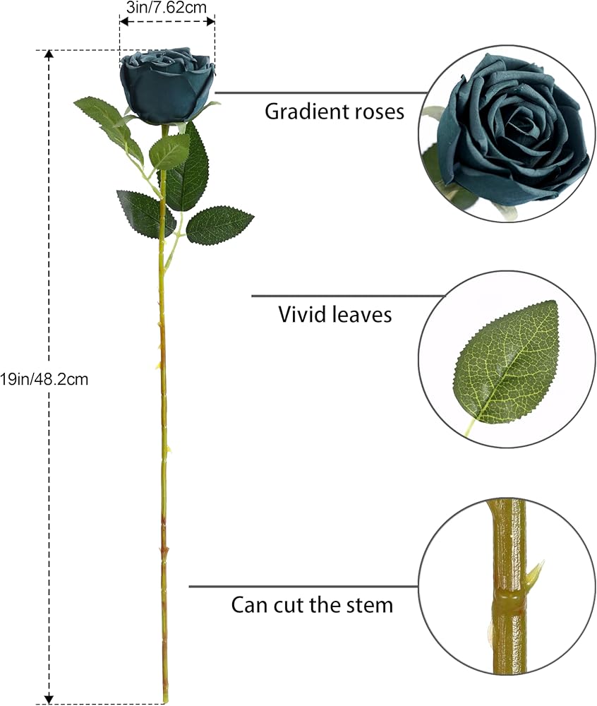 [المقاس] طول الزهرة 19 بوصة، رؤوس الزهور 3 بوصات. الكمية: عبوة مكونة من 10 زهور ورد حريرية مزيفة مع صندوق.