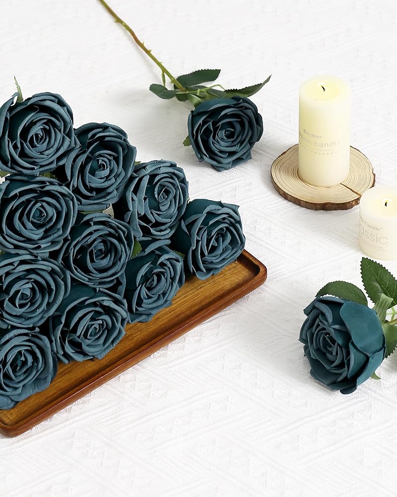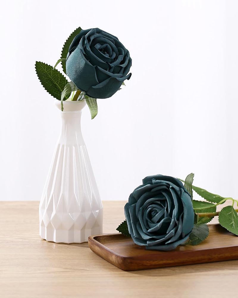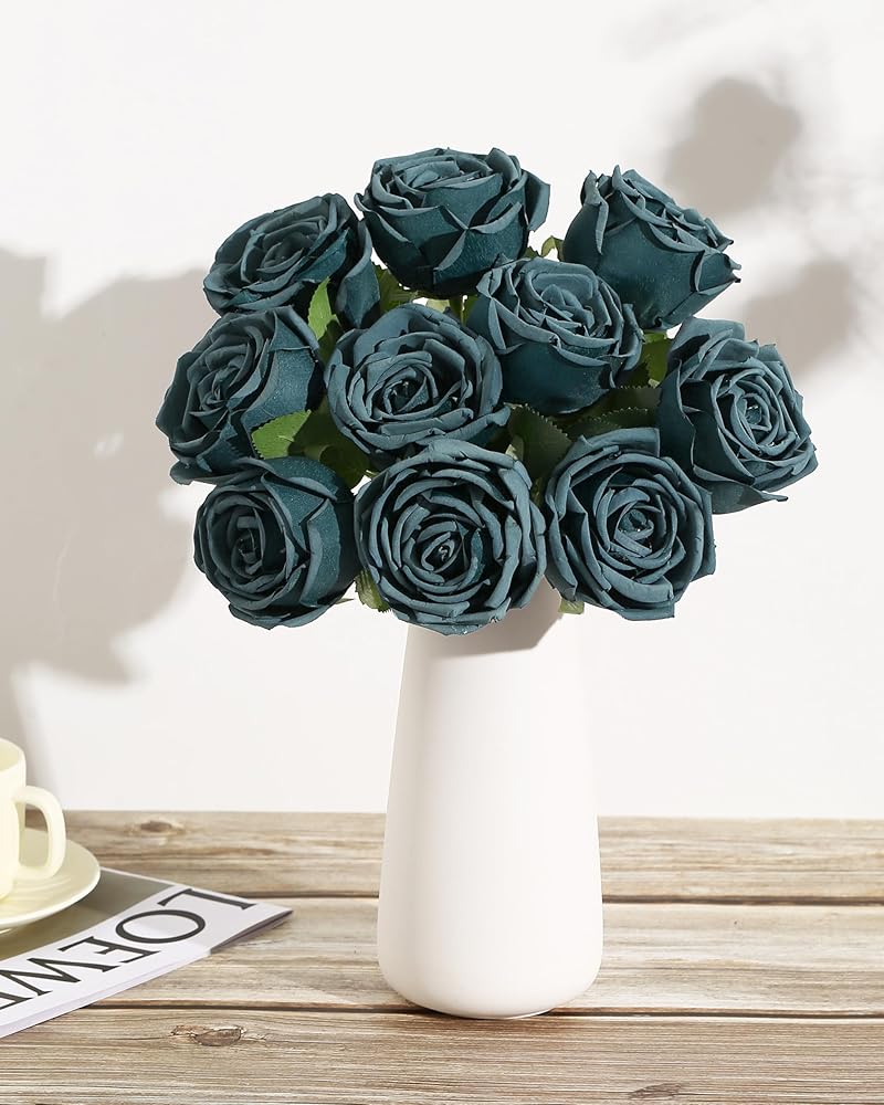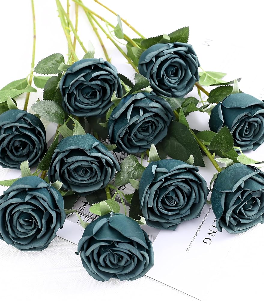 10 قطع من DuHouse زهور صناعية صناعية من الحرير الصناعي باقة سيقان طويلة لترتيب قطع الزفاف المركزية وديكور المنزل والمطبخ (أزرق الطاووس)