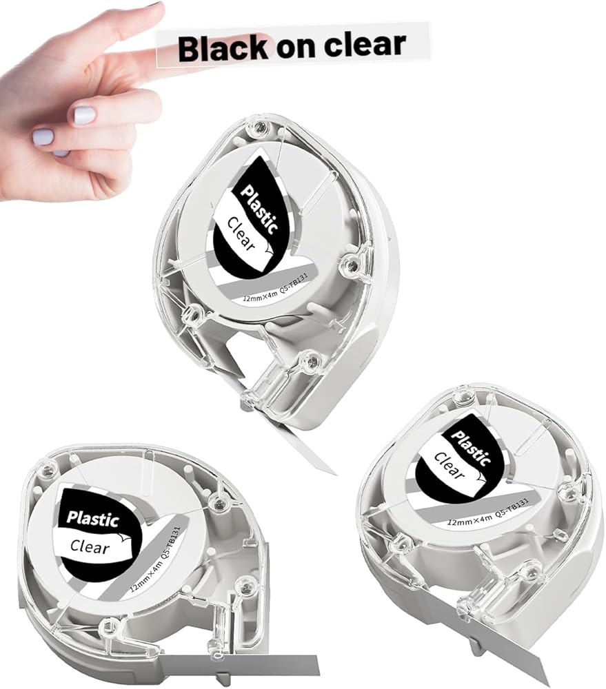 3-Pack EazeID PZ White Label Tape Compatible with dymo white label tape. Each Roll Measures 12mm x 4m (1/2 inch x 13 feet) with Black Text on white Background - Made from Durable Plastic Label Material