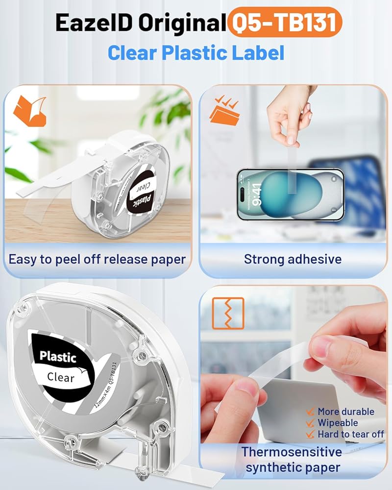 Ink-Free Thermal Printing Technology Ensures white, Sharp Labels - Simplify Organization for Business and Home with EazeID PZ Label Tape Refills
