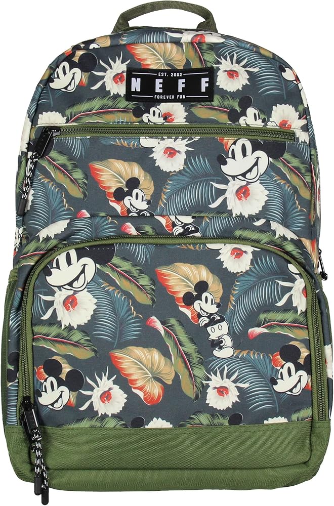 Great Neff Design: This Neff Mickey Mouse laptop backpack offers an enchanting blend of Disney magic and contemporary style. It celebrates the timeless allure of Mickey Mouse with a vibrant aloha floral pattern.