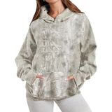 Women Oversized Fleece Camo Hoodies Maple Leaf Hooded Sweatshirt Casual Long Sleeve Fall Winter Pullover Tops With Pockets