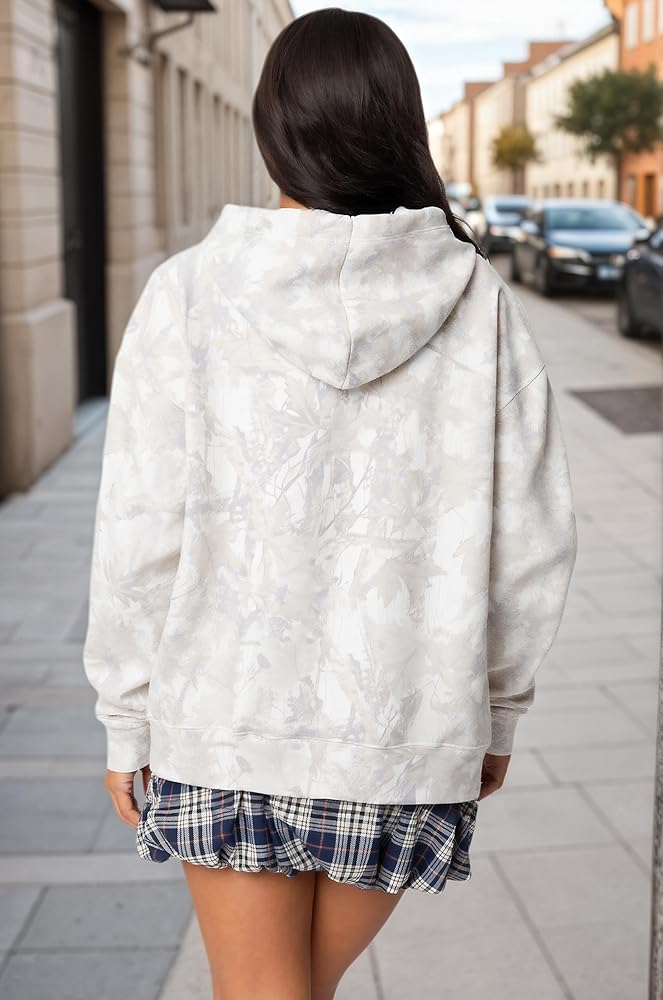 DESIGN: Fall winter oversized vintage camo leaf hoodies for women, drop shoulder collar, ribbed cuffs, fleece lined, long sleeve graphic maple leaf print and mossy oak camo hoodie trendy, womens camouflage hoodies pullover