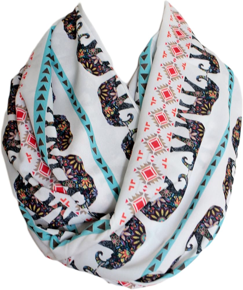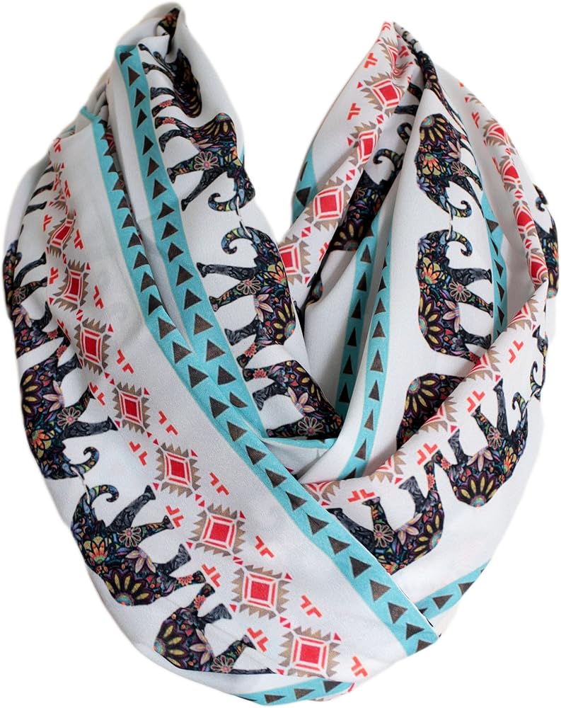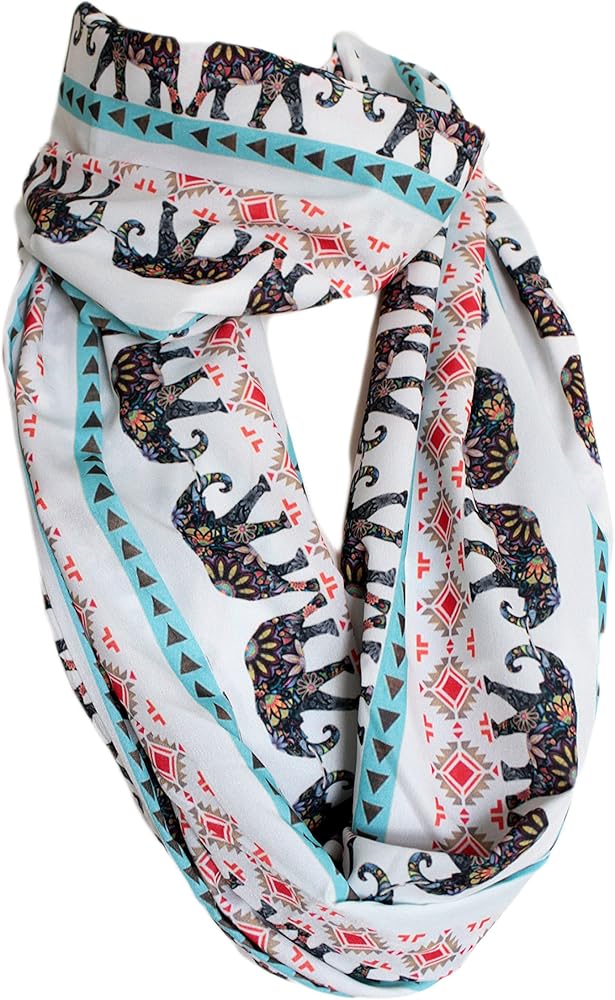 Elephant Infinity Scarf Loop Scarf, Circle Scarf, spring - fall - summer - winter fashion. Machine Gentle Cool Wash with similar colors, Gentle Iron, Lay Flat To Dry, Do Not Wring Produced in smoke and pet free environment.