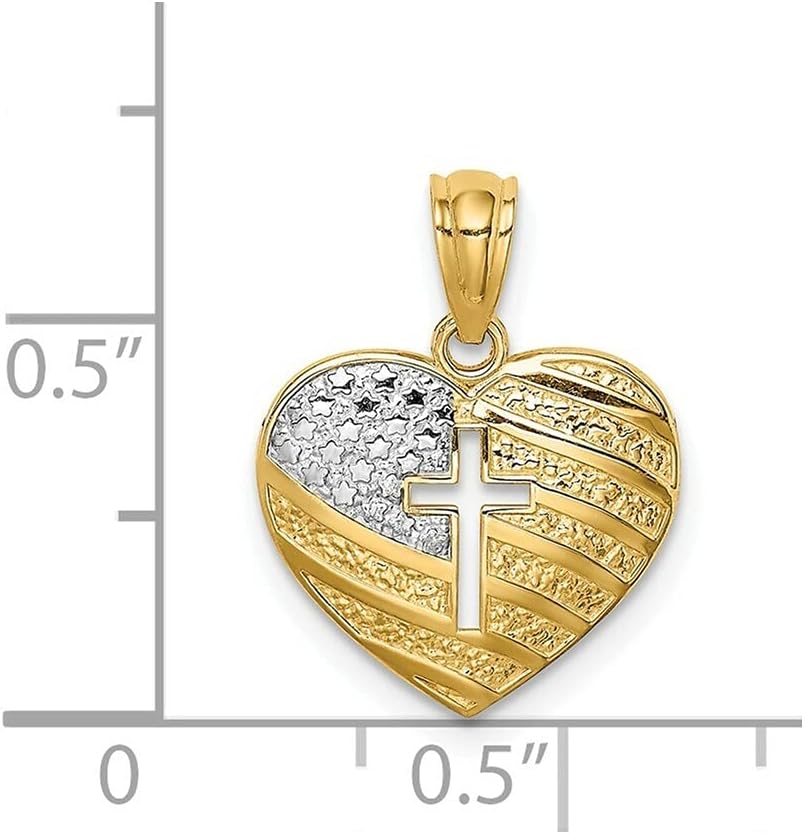 ليكس ولو 14 ك الذهب الأصفر مع علم الولايات المتحدة الأمريكية الروديوم مع قلادة الصليب القلب