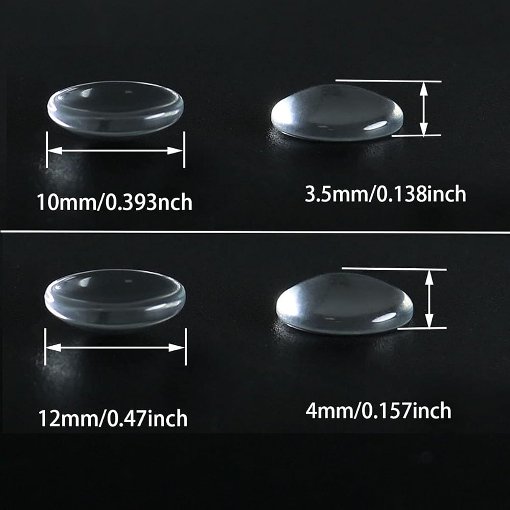 Package content: You will get 50PCS 10mm transparent glass cabochons and 50PCS 12mm/0.47inch transparent glass cabochons, enough quantity to meet your needs for use and replacement in various DIY projects.