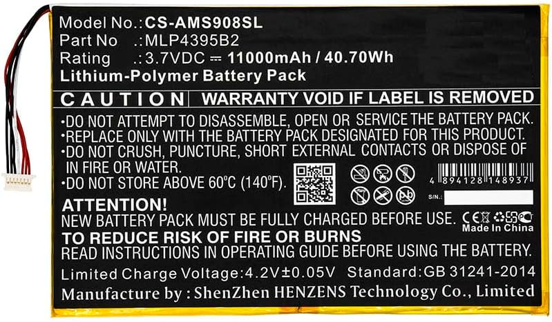 CS-AMS908SL Category Diagnostic Scanner Capacity 11000mAh Type Li-Polymer Voltage 3.7V Rate 40.70Wh Color Black Dimension 188.36 x 119.00 x 4.38mm