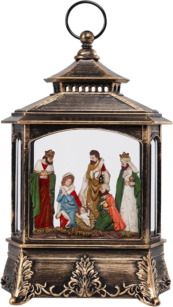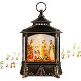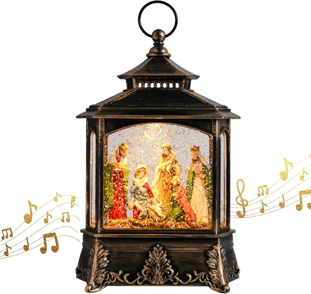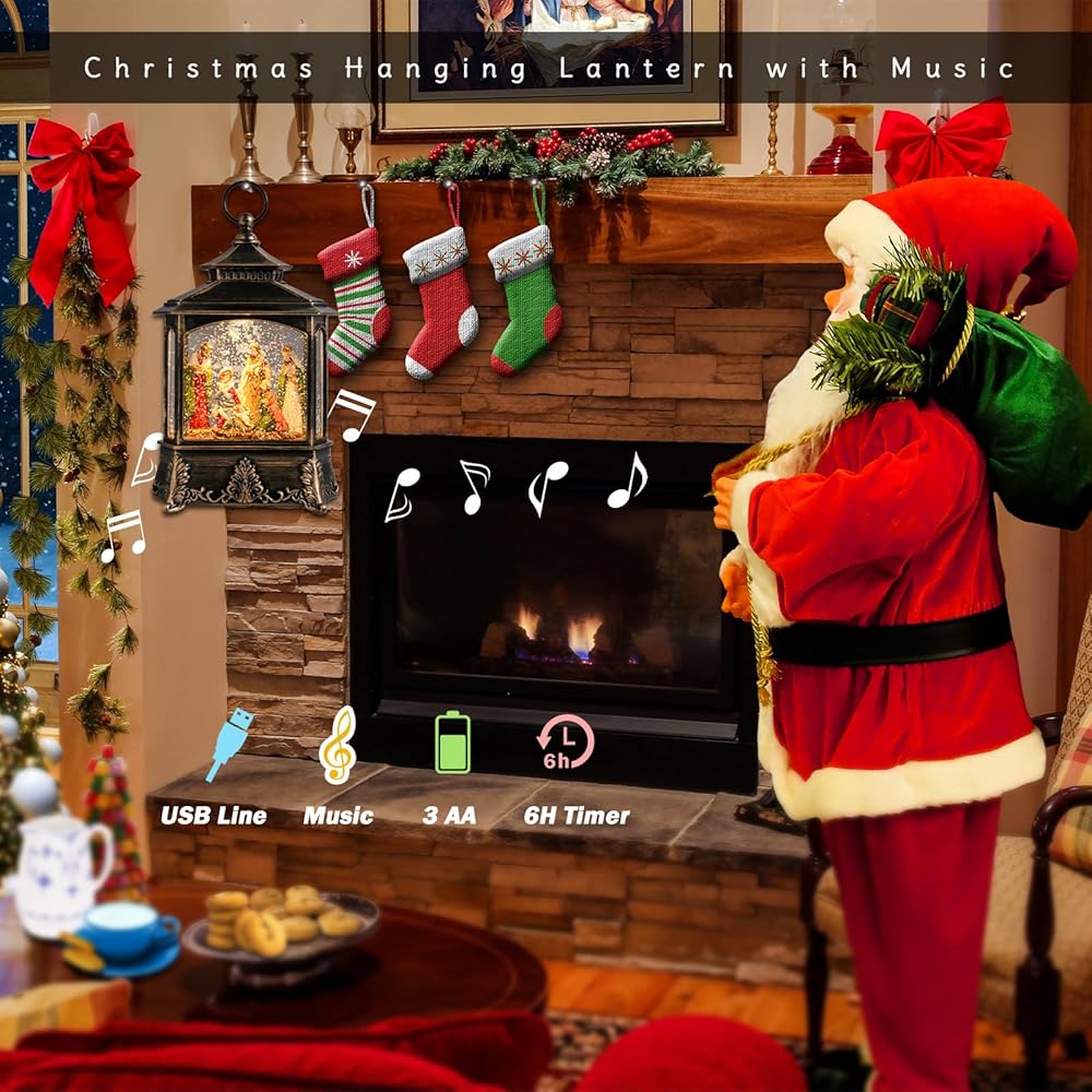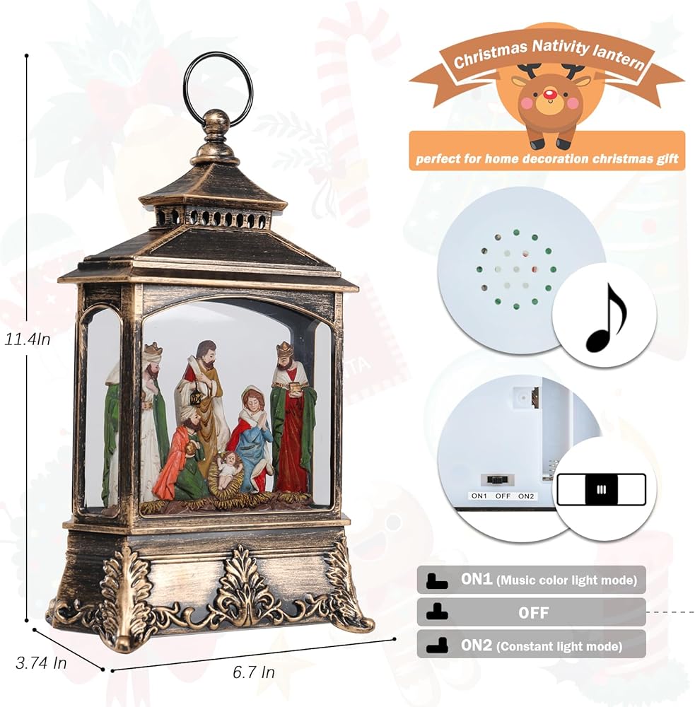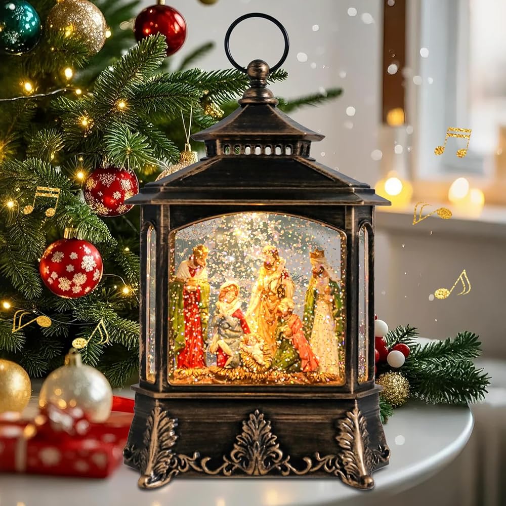 فانوس عيد الميلاد على شكل كرة ثلجية - التصميم الفريد للفانوس والتفاعل بين مشهد المهد في الفانوس يمنح هذا الديكور جوًا دافئًا لعطلة عيد الميلاد. يخلق بريق الماء تحت الضوء الدافئ تأثيرًا مذهلاً لتساقط الثلوج، وهو أمر ملفت للنظر للغاية. يجب أن يكون فانوس موسيقى عيد الميلاد الرائع هدية مثالية لعائلتك وأصدقائك.
