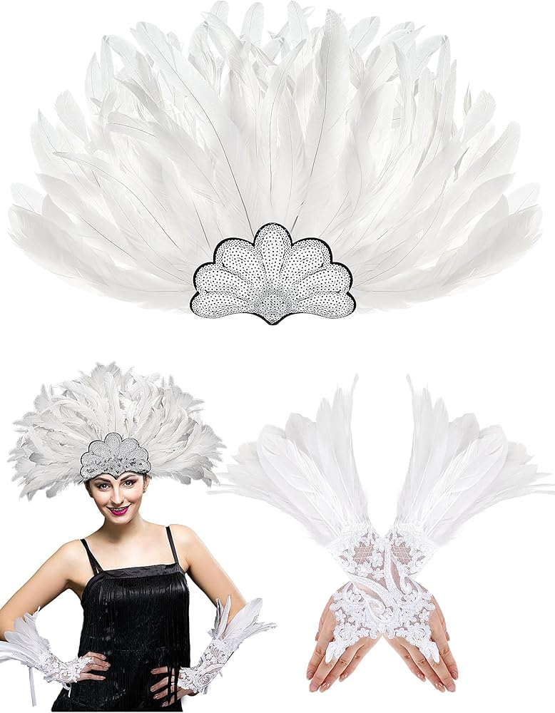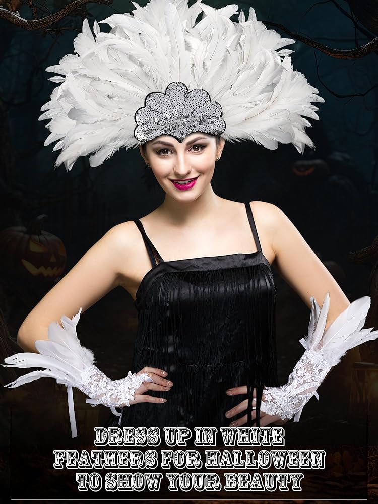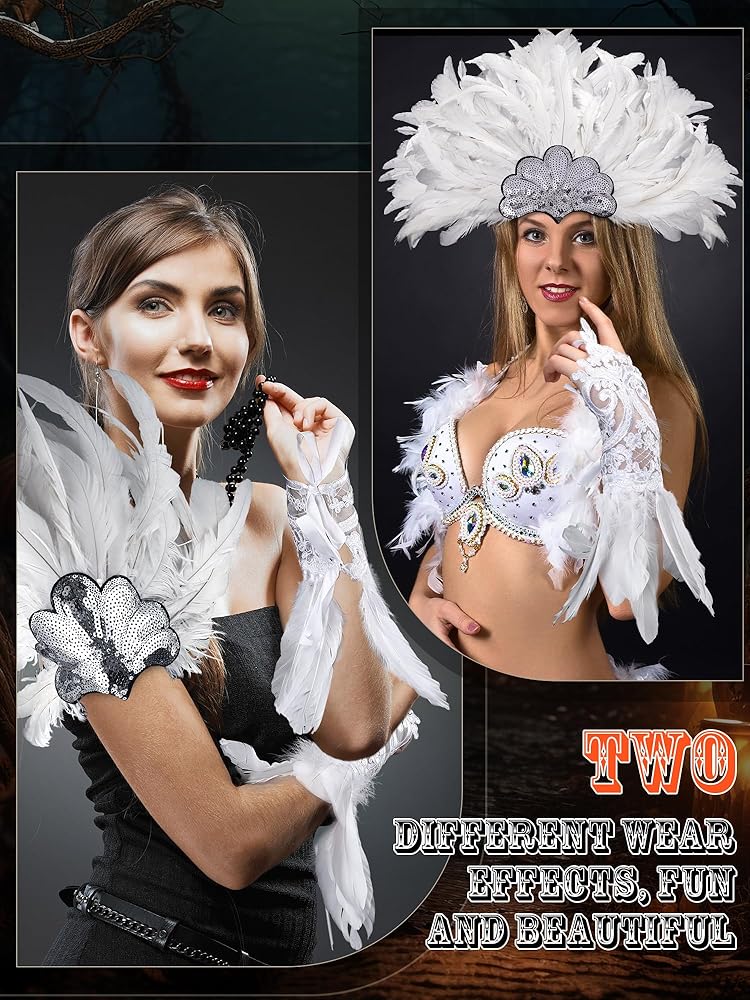 ستحصل على: تحتوي العبوة على قطعة واحدة من عصابة الرأس من الريش الأبيض وزوج واحد من القفازات الطويلة من ريش الدانتيل، مزيج لطيف يمكن أن يلبي احتياجات الملابس الخاصة بك في مناسبات مختلفة، مما يجعلك مميزًا بين الآخرين