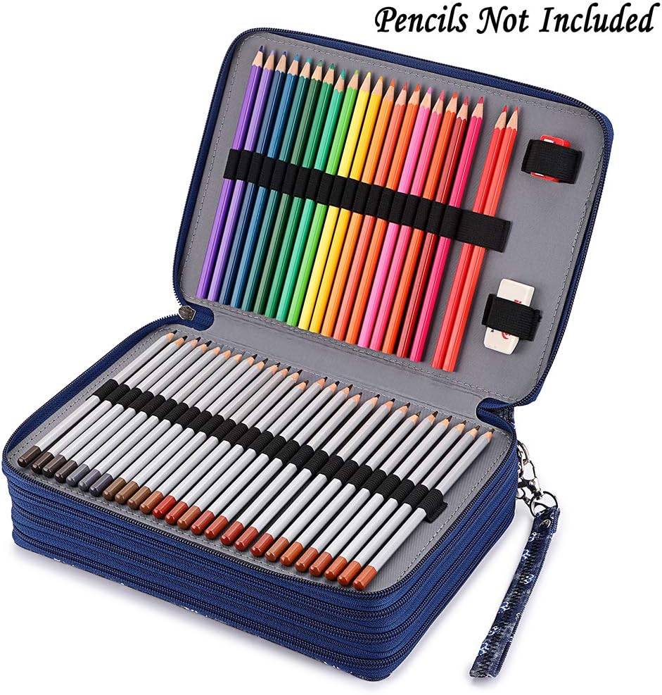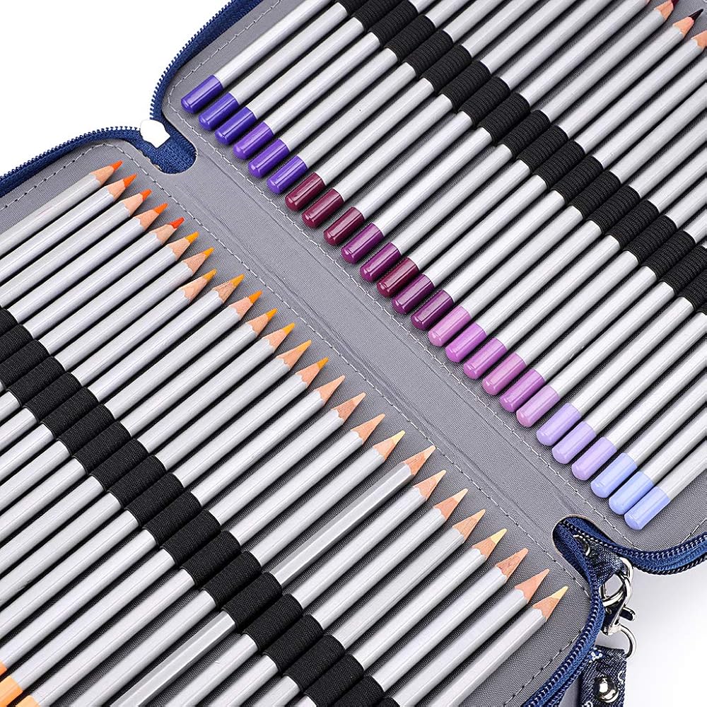 • حافظة أقلام مع مقصورات - طبقات متعددة تجعل من السهل تنظيم أقلام الرصاص حسب مجموعة الألوان، بمجرد فك سحابها، يمكنك الوصول إلى جميع الصفحات والألوان