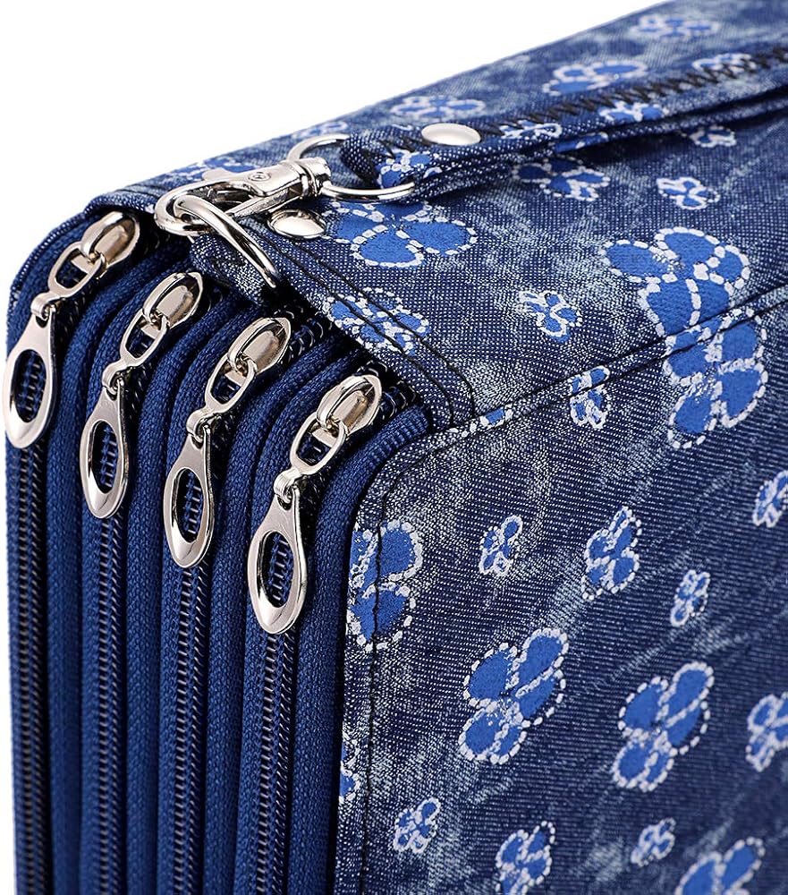 BTSKY مقلمة ملونة - 200 فتحة حامل قلم رصاص حقيبة قلم رصاص سعة كبيرة منظم قلم رصاص مع حزام مقبض صندوق رصاص ملون مفيد مع نمط الطباعة زهرة زرقاء