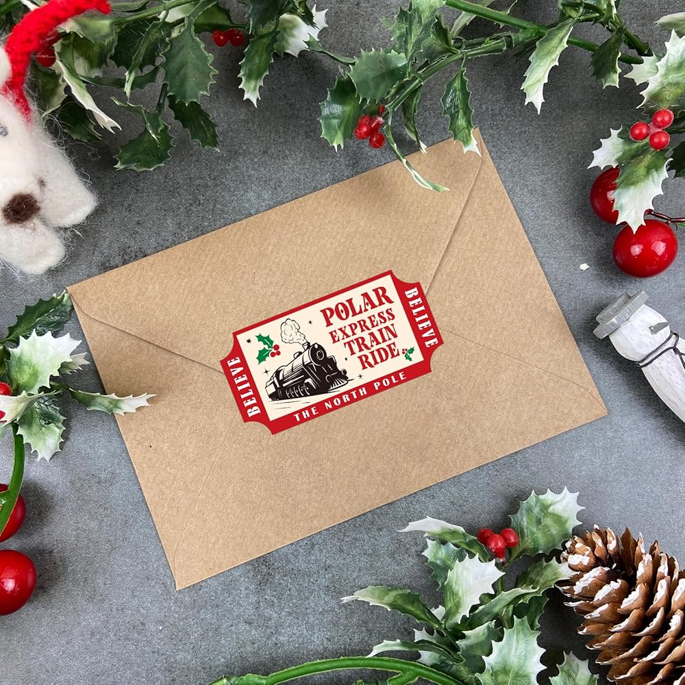 مفضلة حفلة عيد الميلاد - يمكنك تسليم ملصقات تذاكر قطار عيد الميلاد هذه لجعل حفلة عيد الميلاد الخاصة بك أكثر إثارة للاهتمام. ارتديها لإظهار الإيمان بسانتا والقطب الشمالي