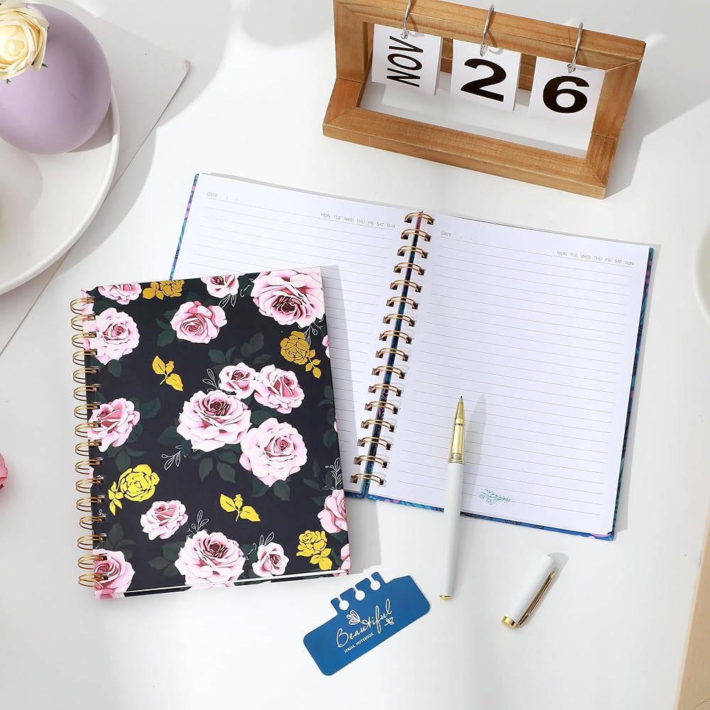 حجم مثالي للحمل: يبلغ مقاس المجلة الحلزونية ذات الغلاف الصلب 5.4 × 8.4 بوصة. الحجم الصغير 5x7 يجعل دفتر الملاحظات الحلزوني الزهري أكثر جاذبية، كما أنه أكثر سهولة في الحمل وأكثر ملاءمة للنساء. دفتر ملاحظات حلزوني بغلاف مقوى مكون من 160 صفحة يمكن أن يلبي احتياجاتك اليومية.