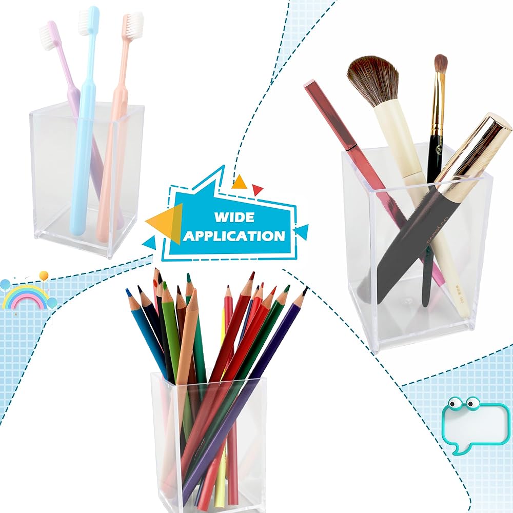 The acrylic pencil cup stationery are suitable for office, coffee bar, bathroom, restaurant and more places and perfect for collecting home office school supplies, office desk organization. You can also apply them to store various kinds of objects such as pens, pencils, lipstick, mobile phones, makeup brush, keys and so on, helping you save space