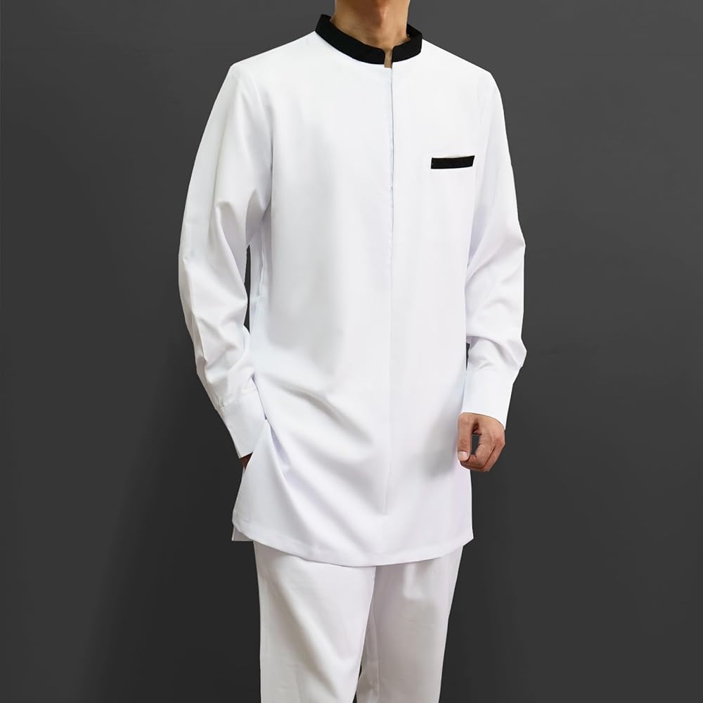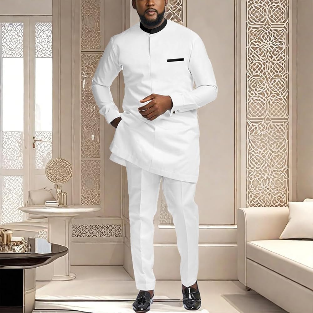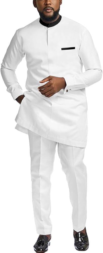 ميزات النمط: قمصان علوية - طبقة واحدة بدون بطانة/ياقة ماندرين/أكمام طويلة/زر للإغلاق. سراويل من تصميم بدلة داشيكي ملائمة، وجيبين، ورباط قابل للتعديل عند الخصر. مصنوعة بعناية فائقة بالتفاصيل، البدلة الأفريقية لدينا مصنوعة من أقمشة عالية الجودة تعطي الأولوية للراحة دون المساس بالأناقة.