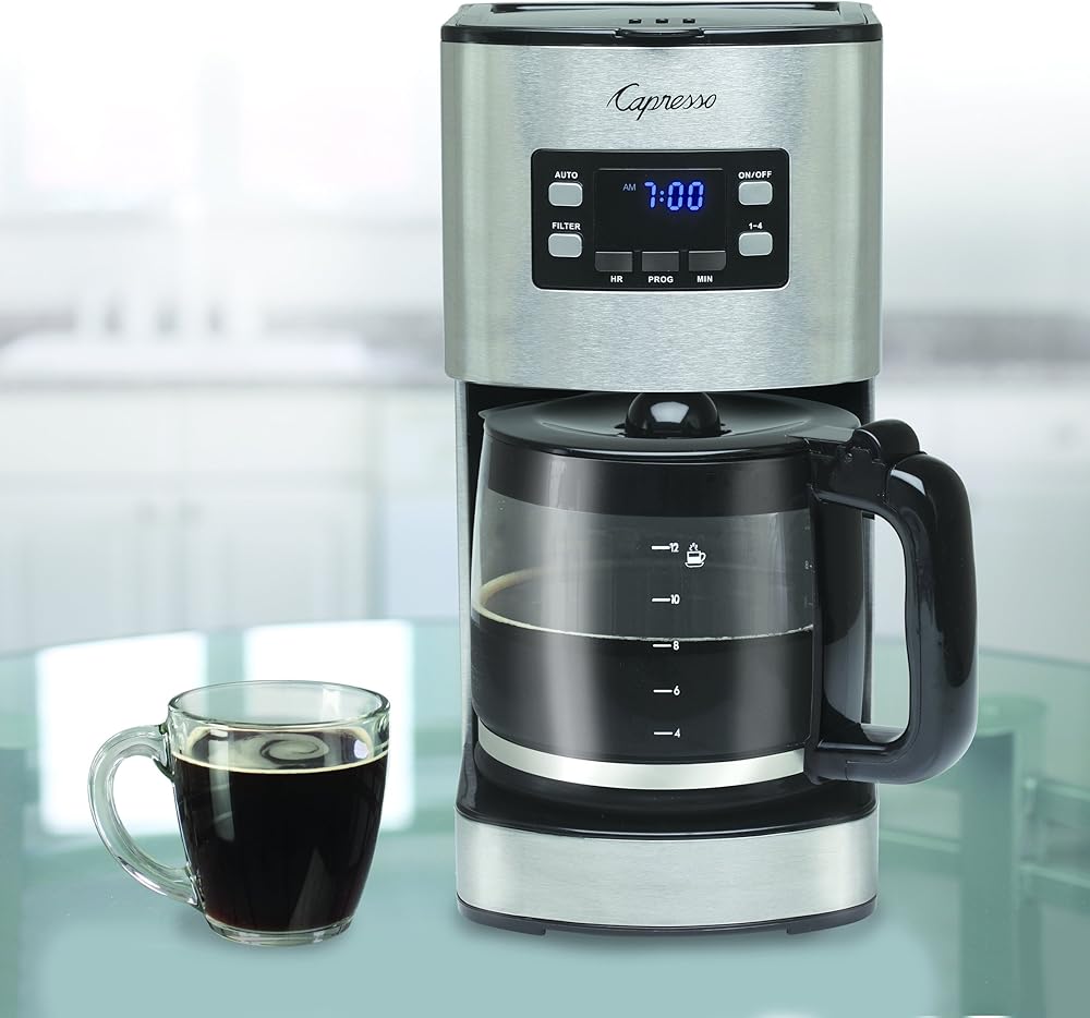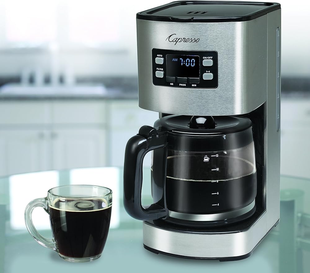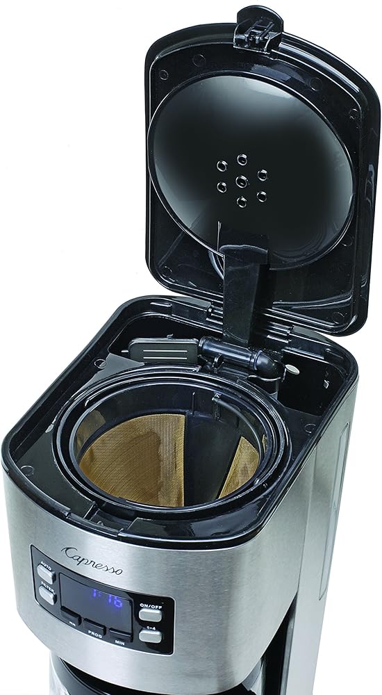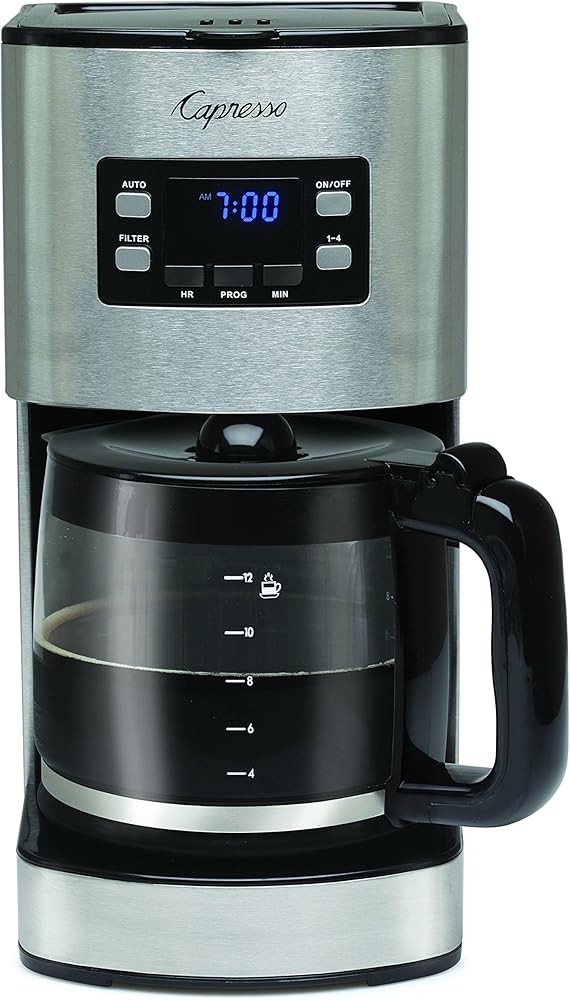 ابدأ يومك مباشرة مع كوب من القهوة من ماكينة صنع القهوة Sg300 من كابريسو. تشتمل ماكينة صنع القهوة المصنوعة من الفولاذ المقاوم للصدأ على إبريق زجاجي قادر على استيعاب 12 كوبًا من القهوة، وهي مثالية لوجبات الإفطار العائلية أو غرف استراحة المكتب. يتميز Sg300 بوظيفة إيقاف التنقيط حتى تتمكن من إخراج الإبريق وسكب كوب لنفسك في منتصف عملية التخمير. تشتمل ماكينة صنع القهوة هذه على فلتر فحم وحامل، بينما تتميز ماكينة صنع القهوة بمؤشر ضوئي للفلتر ينبهك عند الحاجة إلى استبدال الفلتر. يوضع الإبريق على صينية تسخين مطلية وغير لاصقة تحافظ على دفء القهوة لمدة تصل إلى ساعتين. والأكثر ملاءمة، أن جهاز Sg300 مزود بوظيفة الإغلاق التلقائي للحفاظ على الأشياء آمنة وكفاءة في استخدام الطاقة. يتم دعم Sg300 لمدة عام واحد من الشركة المصنعة كجزء من التزام Capresso بالجودة.